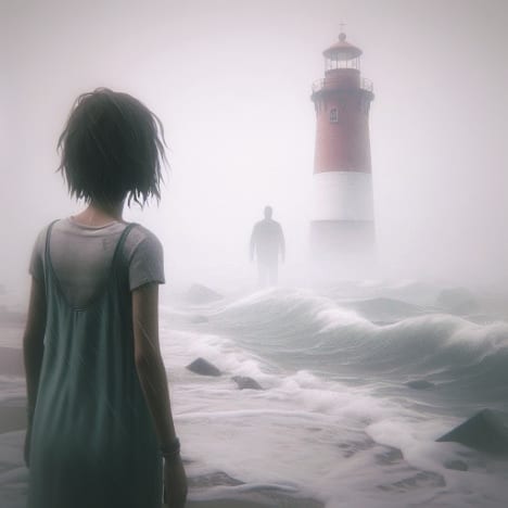 Taken under is a lost soul. Her sinking body marks the drowning of her soul. Losing a part of herself that can't be ignored, represented by her missing arm. The real loss however, is the heart. That kind, caring, loved person is no more. As she sinks to her dismay in the abyss, an evil soul below is watching. They're eager for a new soul entering their control.The three images respectively represent being lured, taken, and being amongst other souls taken under.