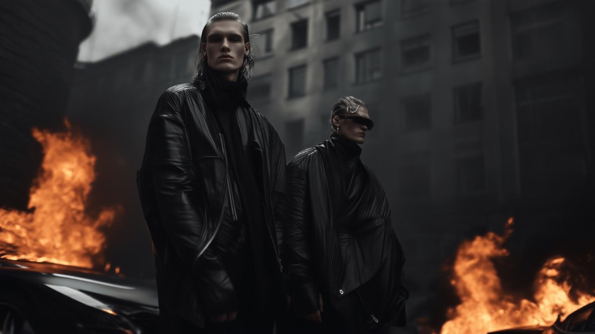 https://www.youtube.com/watch?v=v4-AMQedR80 The Balance of Darkness A dystopian fashion editorial where models stand against flames and ruins, dressed in sculptural black leather and futuristic drapery. The image contrasts destruction with elegance, showing fashion as...