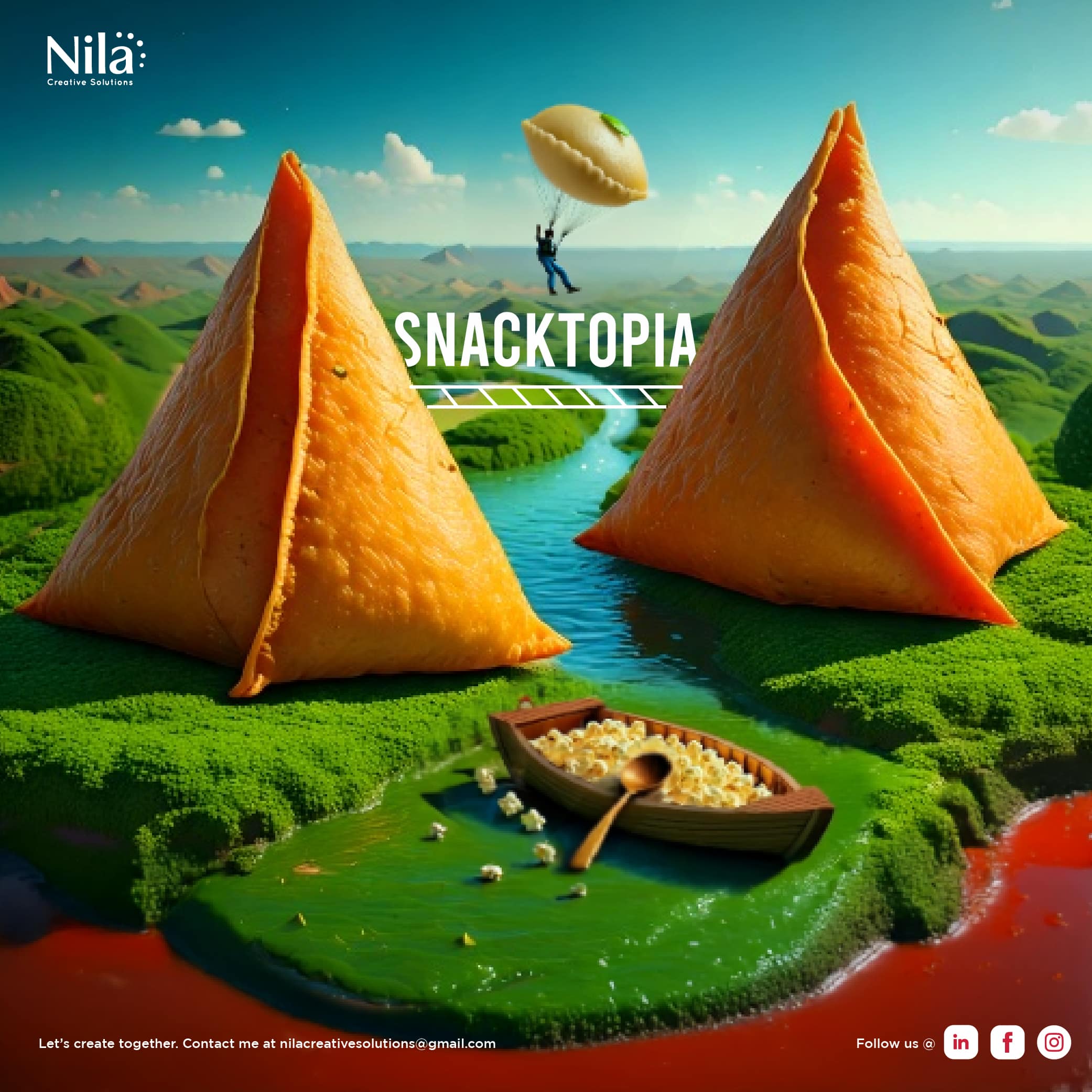 The Snacktopia I created this piece, Snacktopia, by reimagining a dreamy landscape entirely out of my favorite snacks. The mighty samosas stand tall as mountains, symbolizing my top snack choice. Flowing through them is a river made of samosa chutney, adding flavor to...