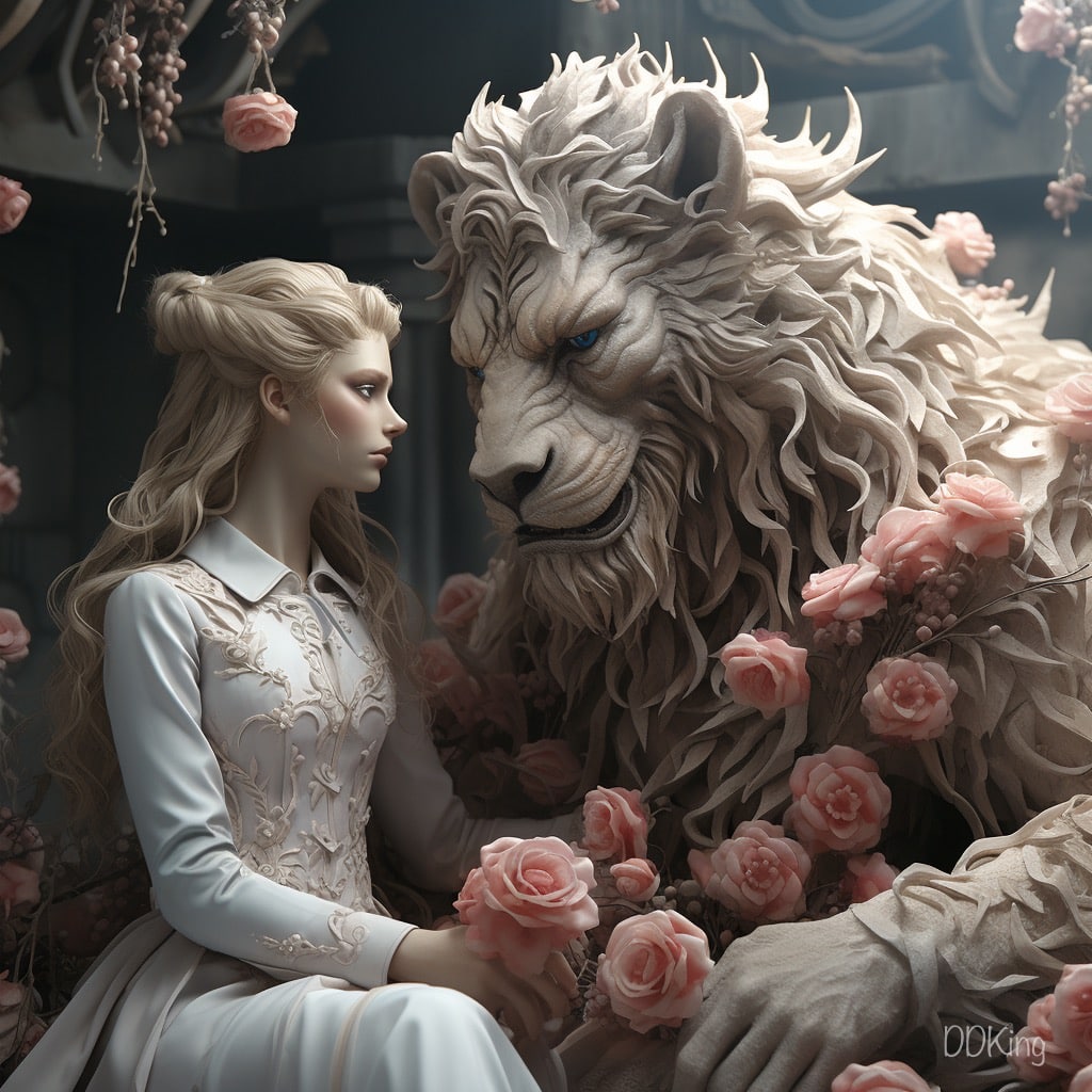 “Beauty and the Beast” is an AI-generated artwork by DDKing, produced in a limited edition of three. Measuring 80×80 cm, the piece is presented in a matte finish on aluminum D-Bond and elegantly framed in a shadow box. This artwork reimagines the classic Disney tale with a modern and mature perspective, while staying true to the timeless message: “Real beauty is found within.” The composition features the iconic characters (with a DDKing Twist) in a delicate and intimate moment, surrounded by roses that symbolize love and life’s fleeting beauty. The detailed rendering and soft color palette enhance the dreamy, romantic atmosphere of the piece, making it a captivating visual experience.