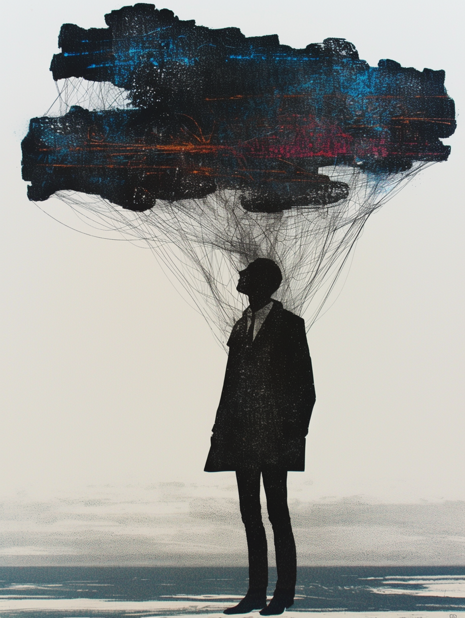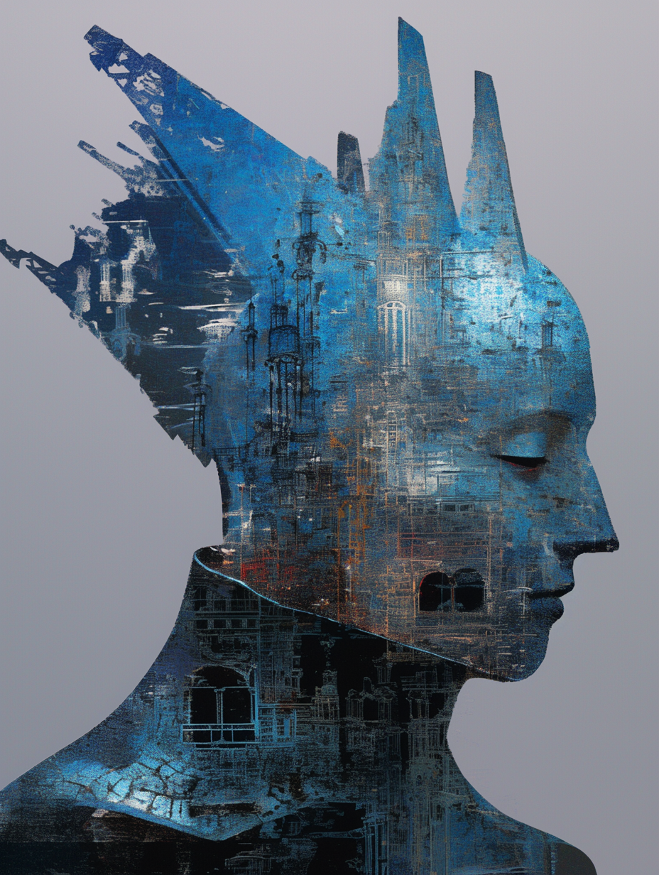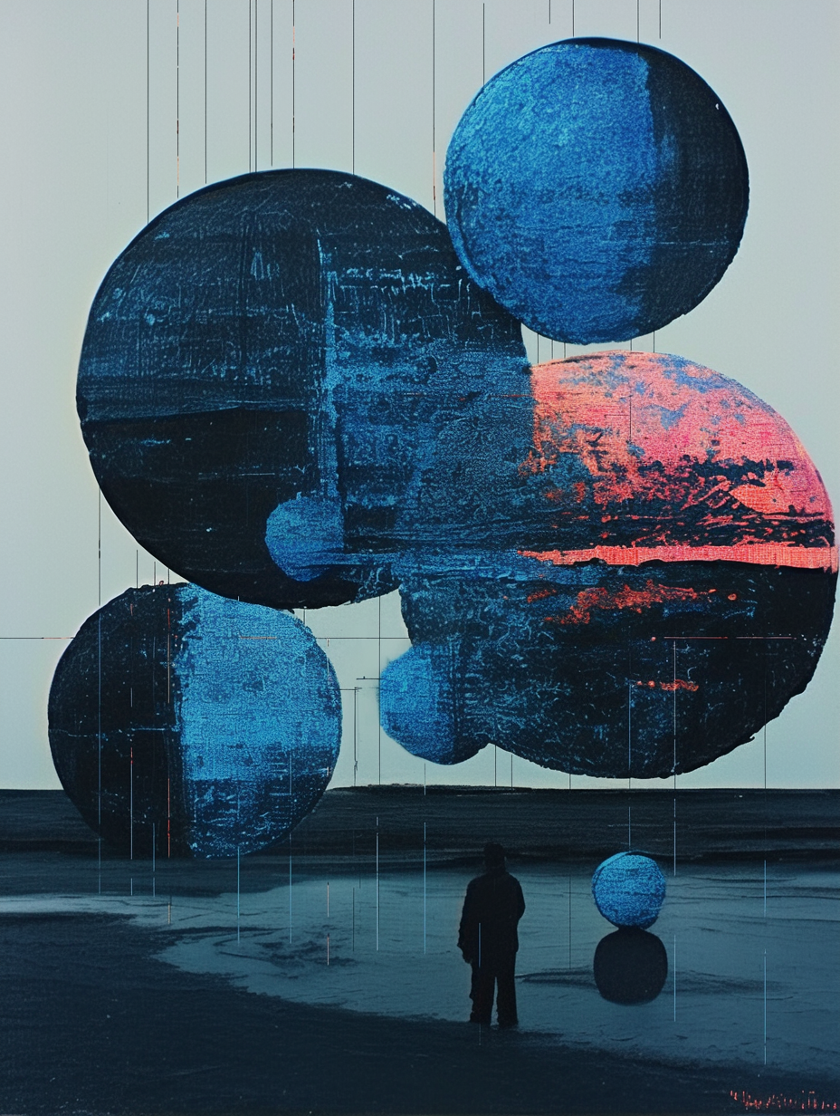 A surreal journey through fragmented consciousness and cosmic whispers, Echoes of the Ethermind captures the delicate tension between self and shadow, thought and tether, dream and dimension. Each figure is caught amid transformation — a fluttering of ideas, memories, or beasts that inhabit the space between reality and imagination. With a blueish palette and painterly textures, these pieces ask one question: What if your thoughts could leave your body and take shape?