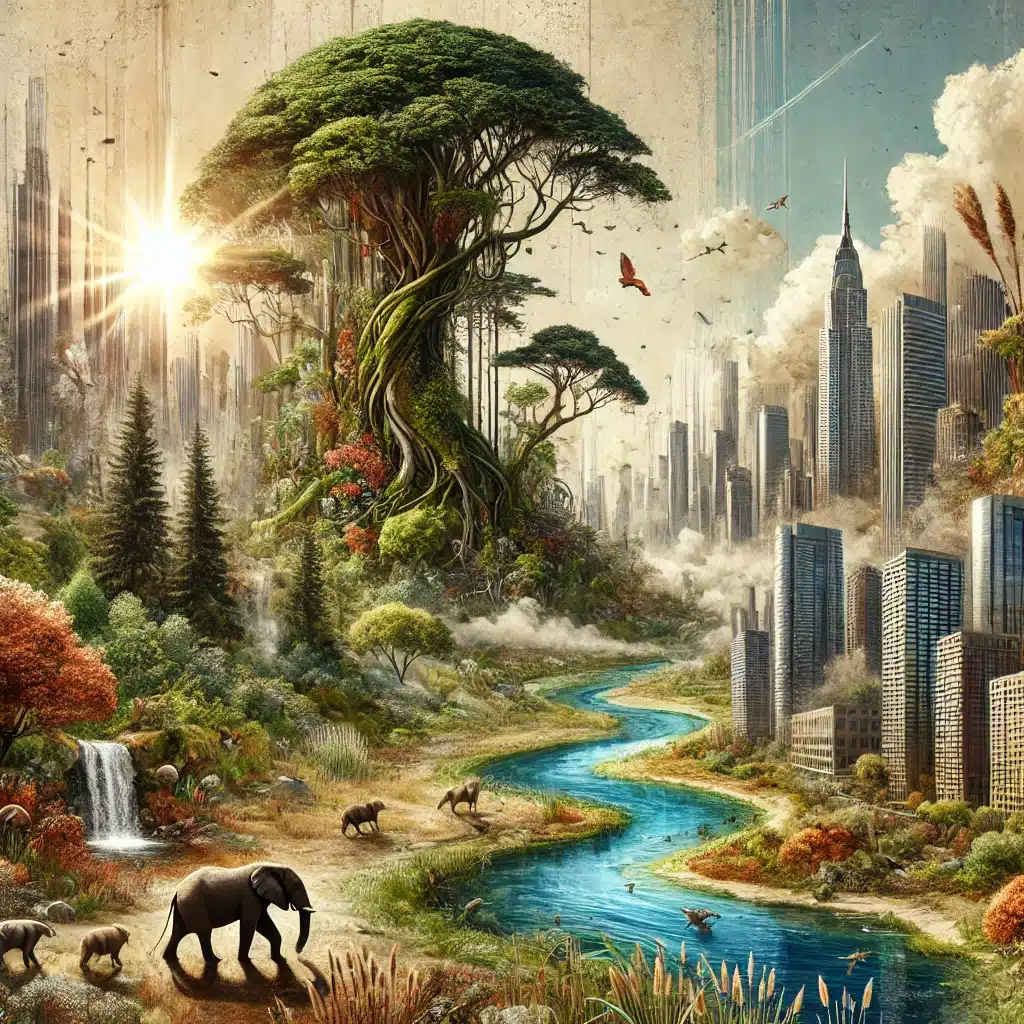In the realm of architecture, the merging of a verdant forest with a futuristic skyline reflects our journey from humble beginnings to building cities that aspire to blend nature with technology. It’s a vision of growth that respects its roots, a testament to our evolving relationship with the environment.