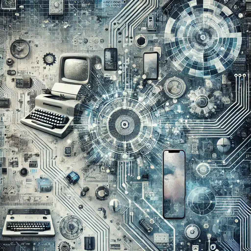Computing technology unfolds from the typewriter to the digital circuit, a narrative of communication transformed. It symbolizes our journey from crafting words on paper to connecting in a global web of ideas, bridging gaps once thought insurmountable.