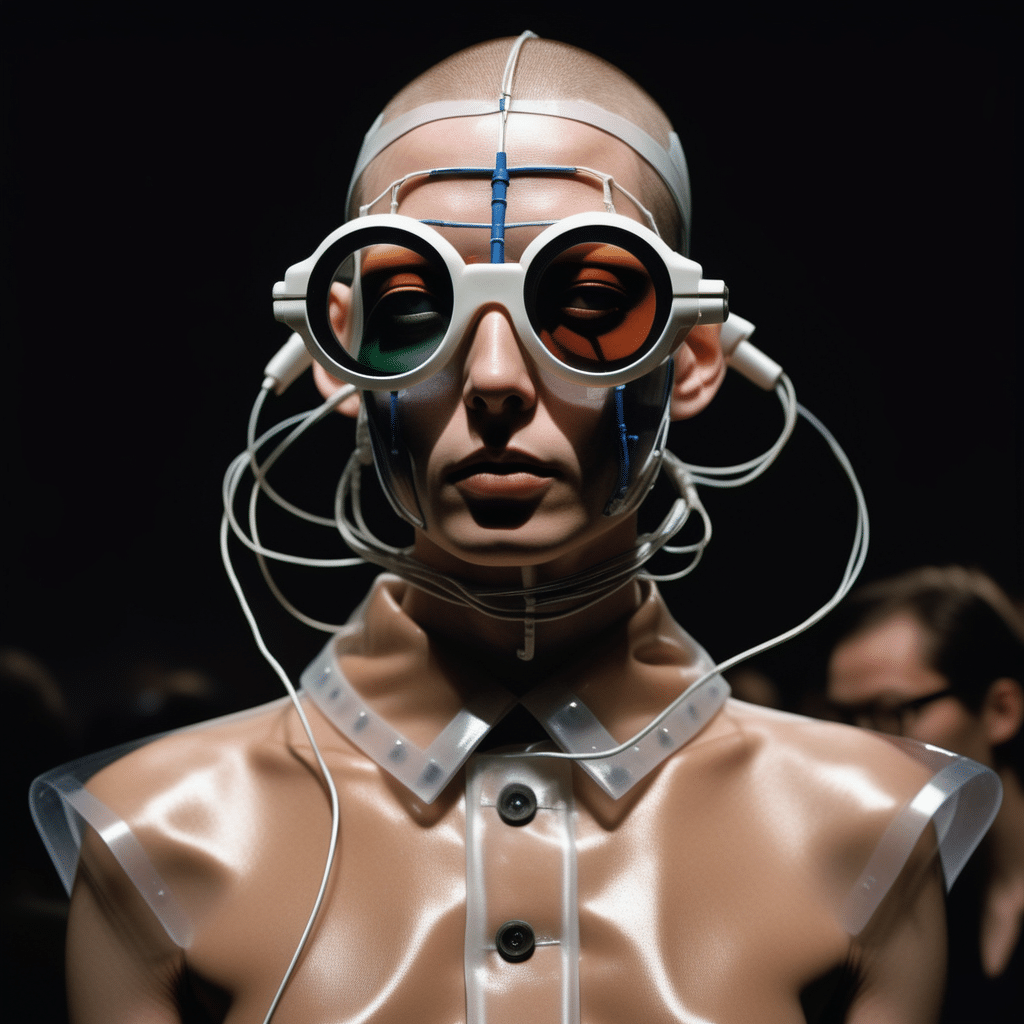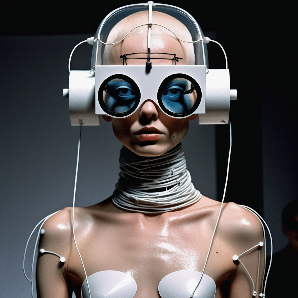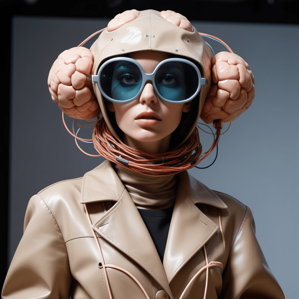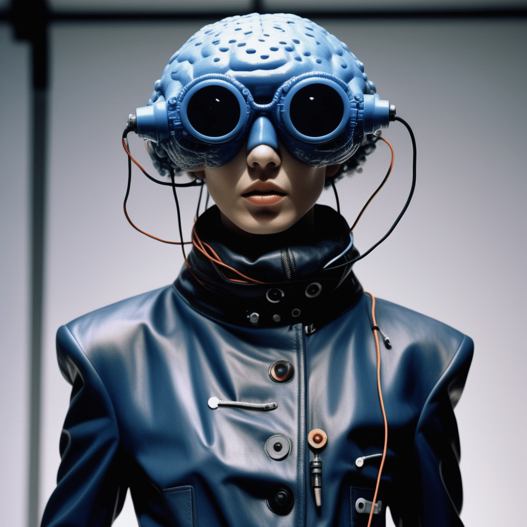 Since the artist cannot be able to understand the true reasons for his ideas in the conventional creative process, I have looked for a way to instruct and guide the image-generating AI with art-specific instructions and vocabulary, which underpins the main theme (functional clothing for a not-so-fictional future / fashion design) with academic terms, which I in turn extract from an AI-fed pool consisting of noise of art-related technical terms by random generator.