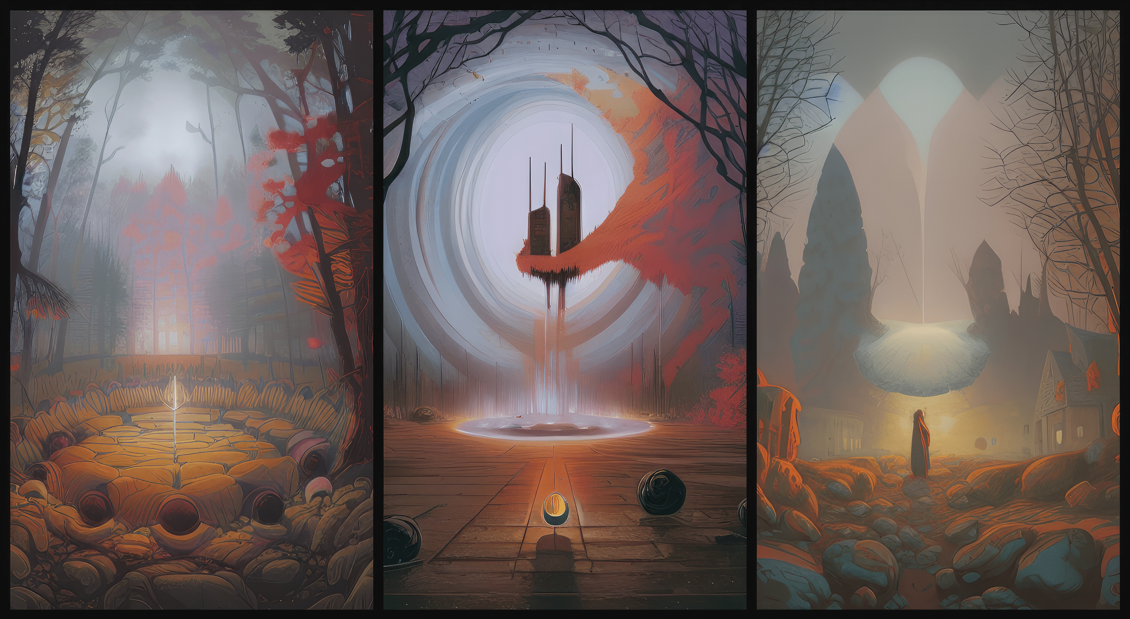 Taken as a whole, this work attempts to, by combining elements of science fiction, spirituality and landscape art, depict the interplay of cosmic forces, perception and balance, drawing the viewer into thinking about our essence.