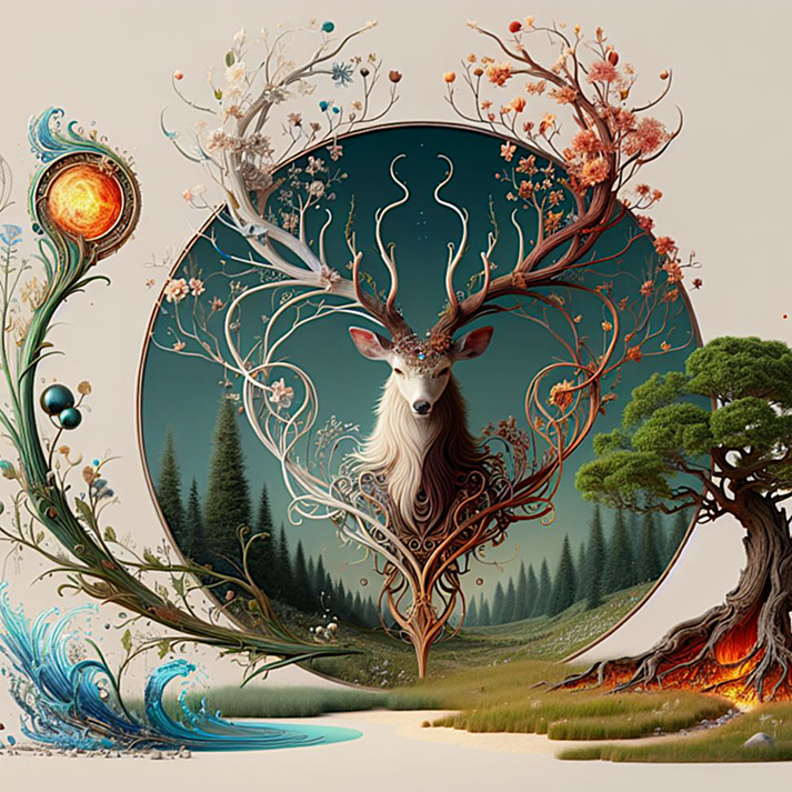 An expression of parallel of ungulate antlers and tree branches in an elements abstraction.