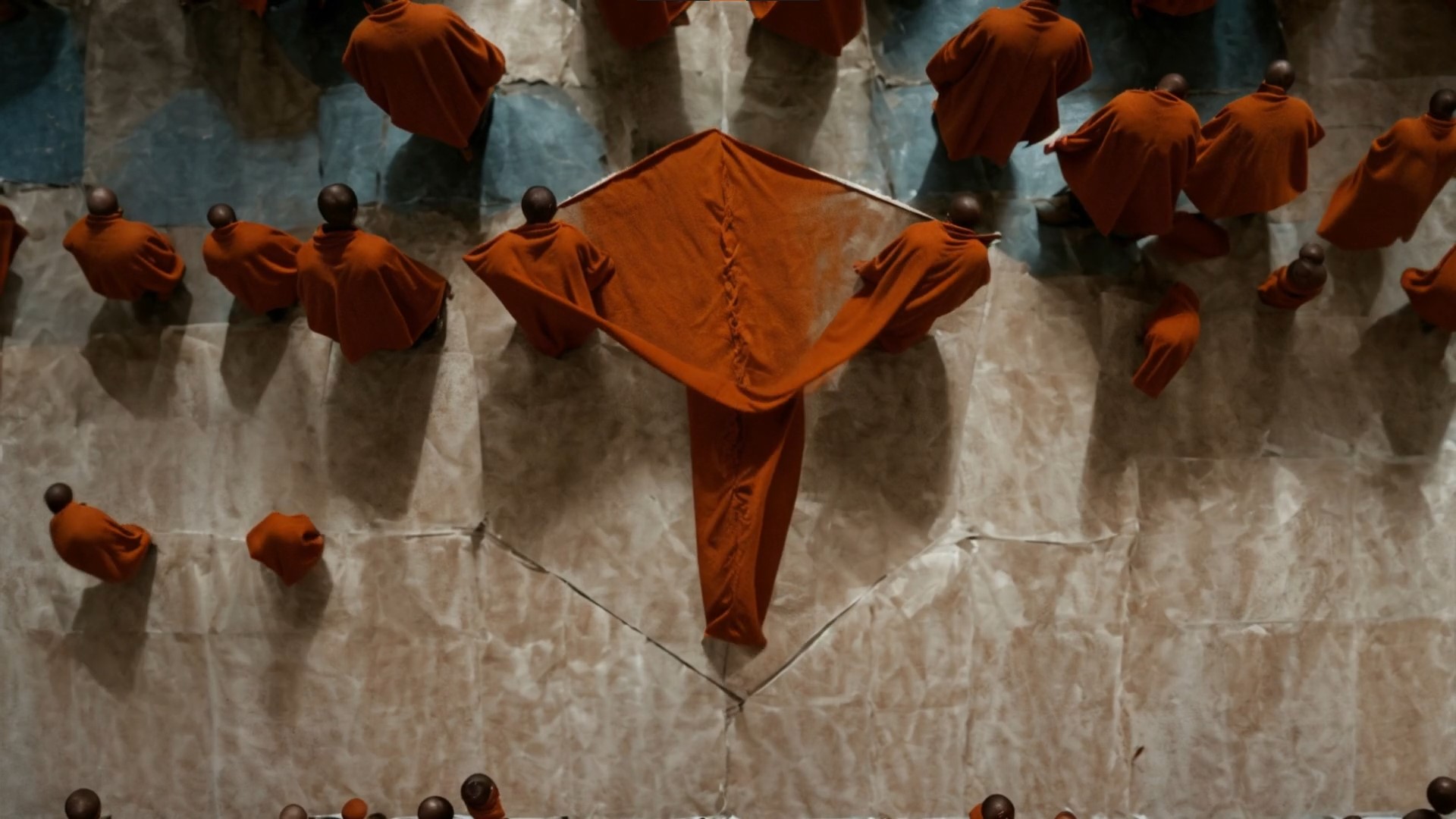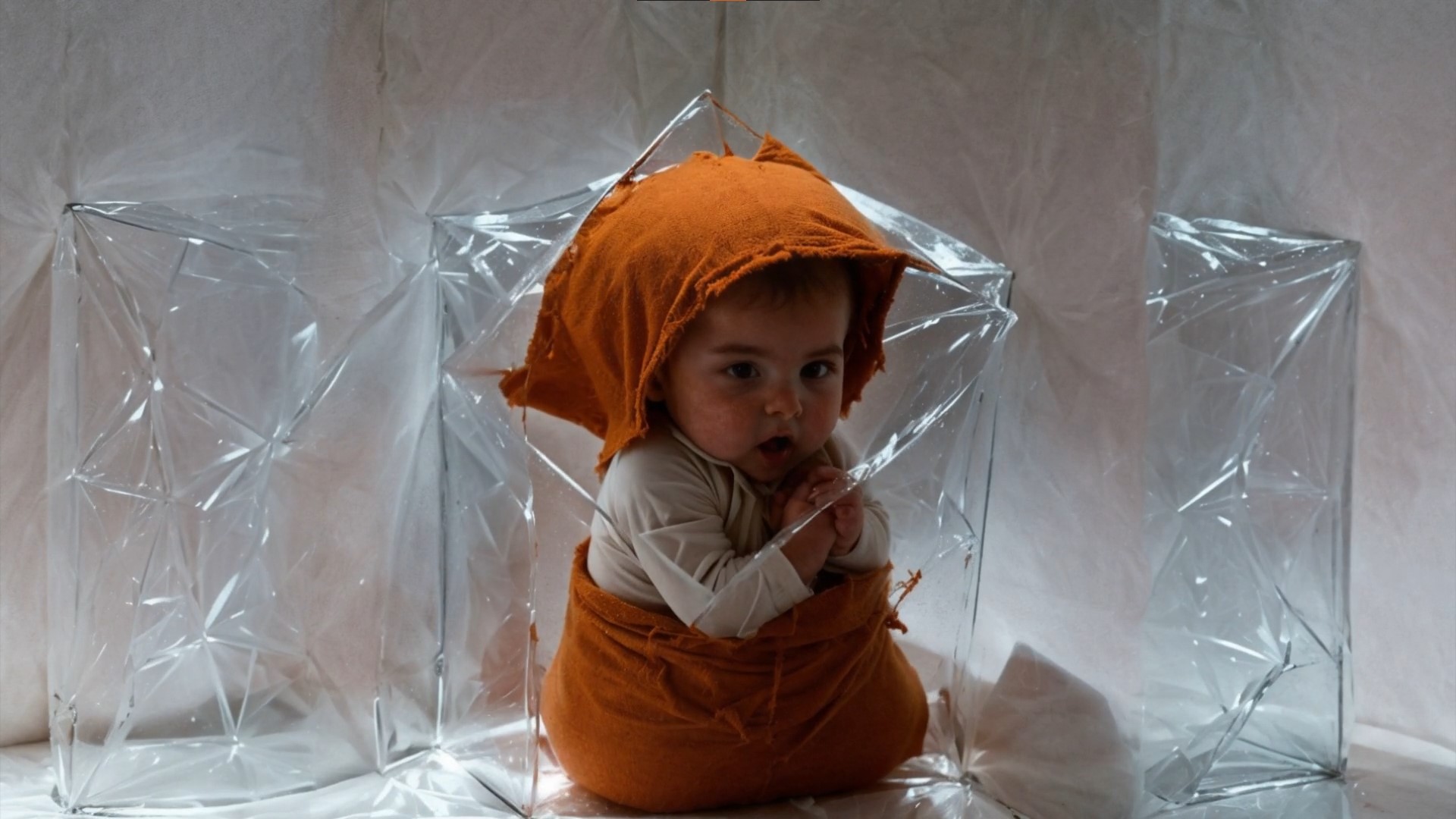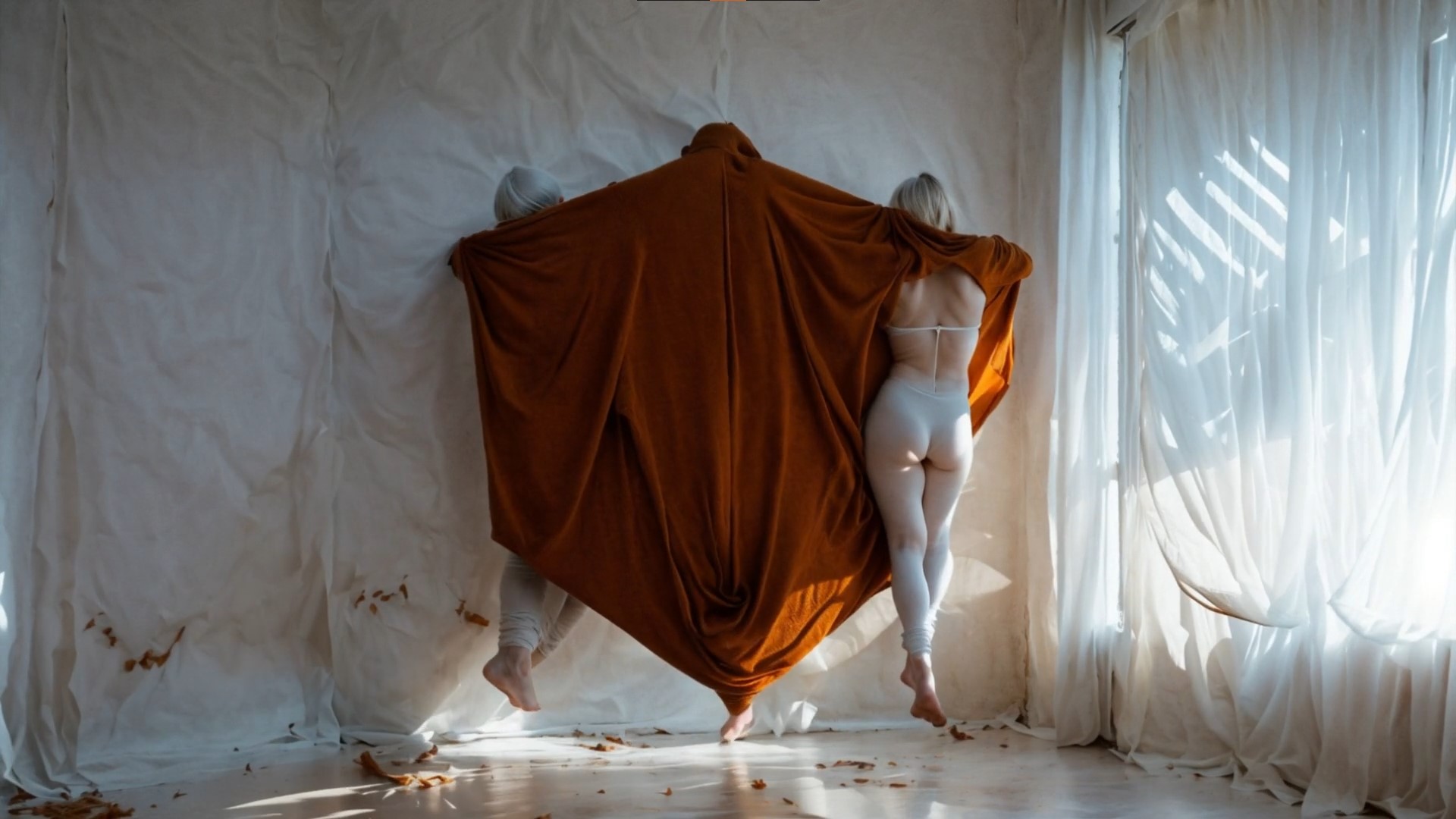 A rotating cube, endlessly transforming. Water becomes flesh, stillness becomes motion, yet the form persists. In rust orange and dim blue, in loop and rhythm, this work explores the paradox at the heart of existence: what changes, what remains. The cube turns. Time flows. We are both.