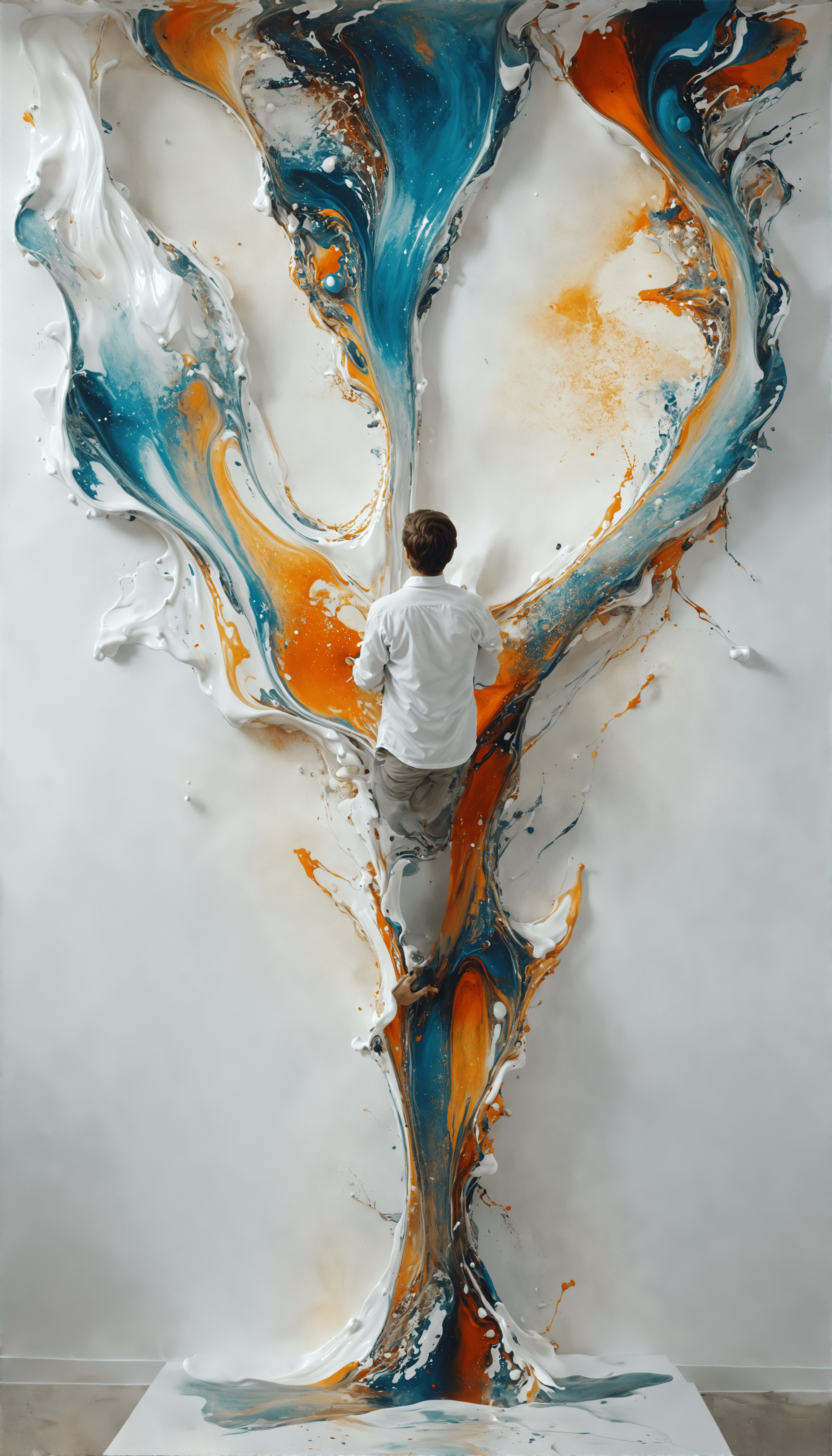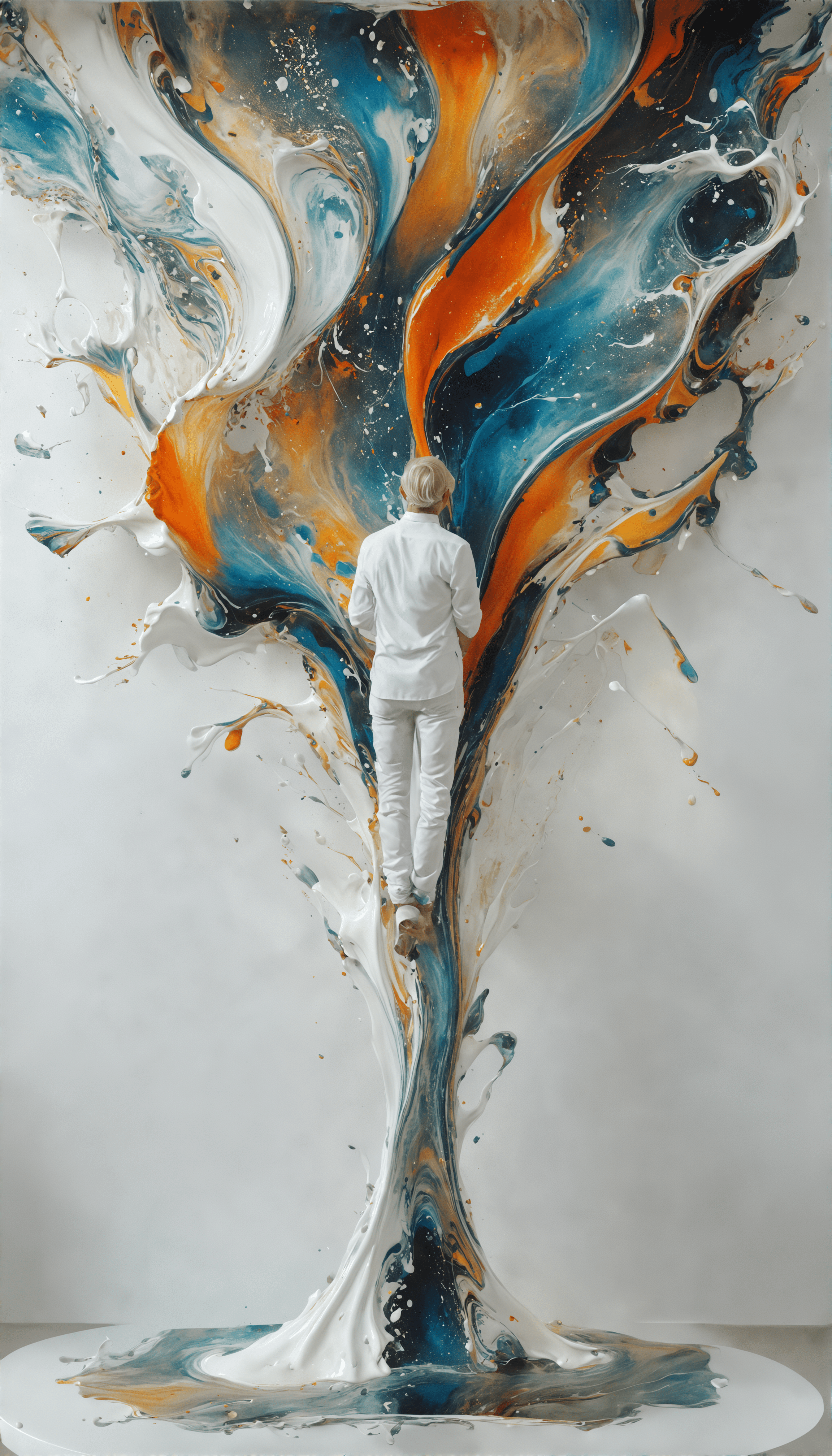 "Rust Orange and Dim Blue" is a series of AI-generated images that captures the essence of artistic creation. The artworks evoke the tactile sensations of traditional mediums like oil or acrylic paint, where colors and textures meld in rich, organic forms. In this series, the hues of rust orange and dim blue weave together to create visual narratives that are both timeless and contemporary.