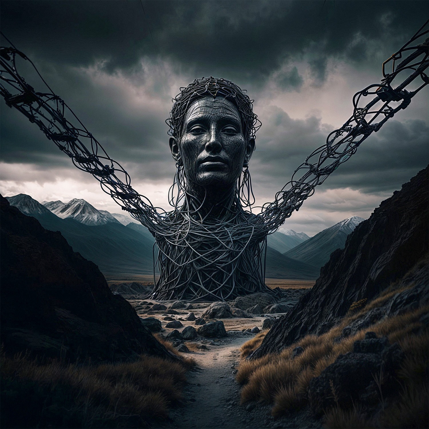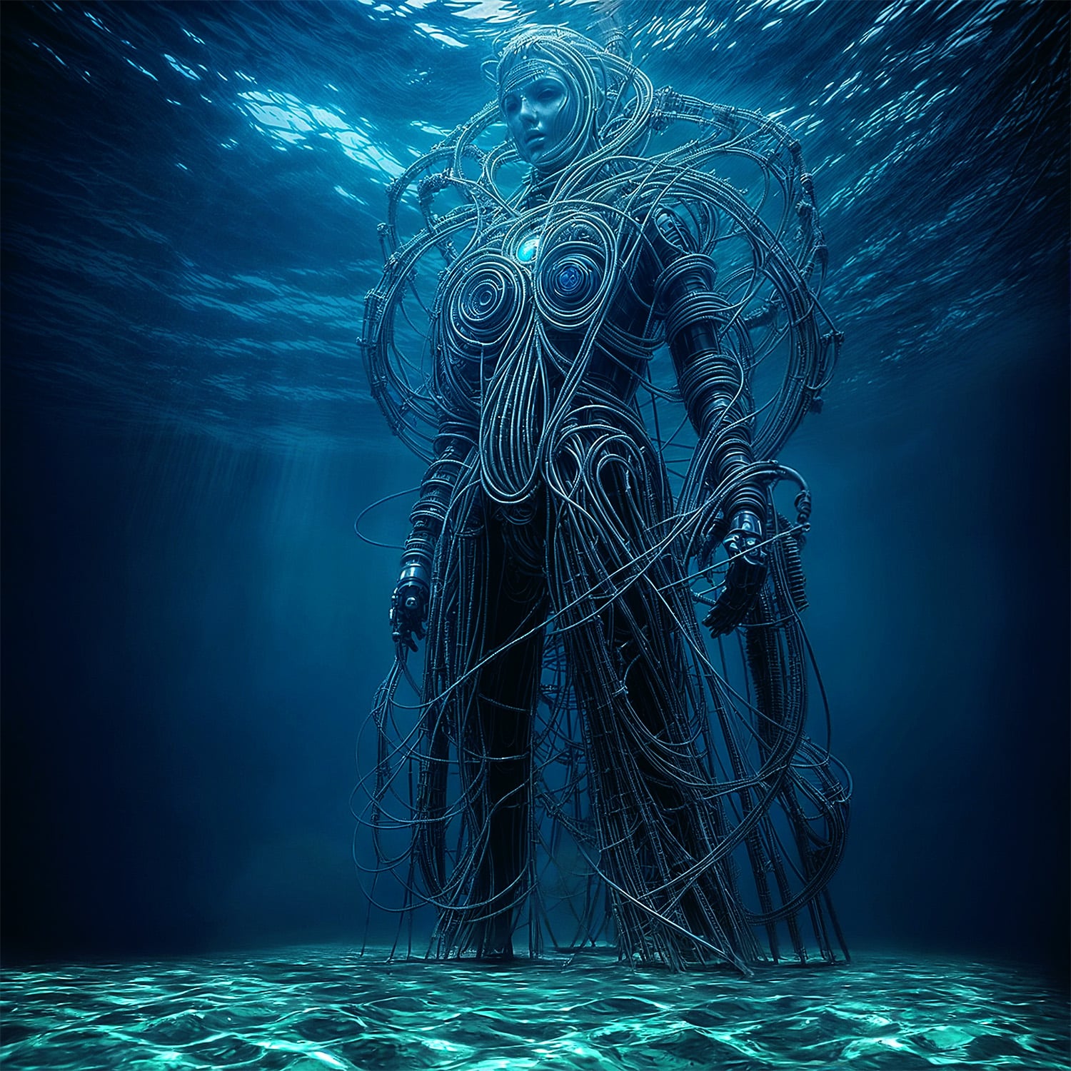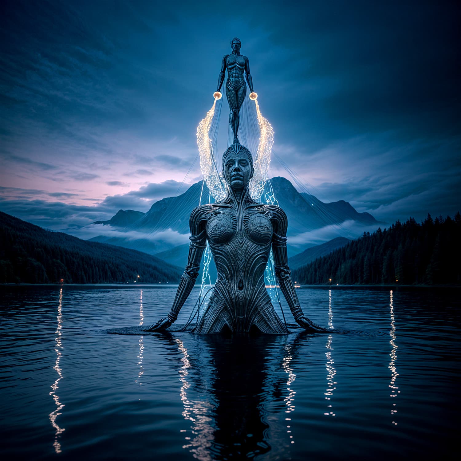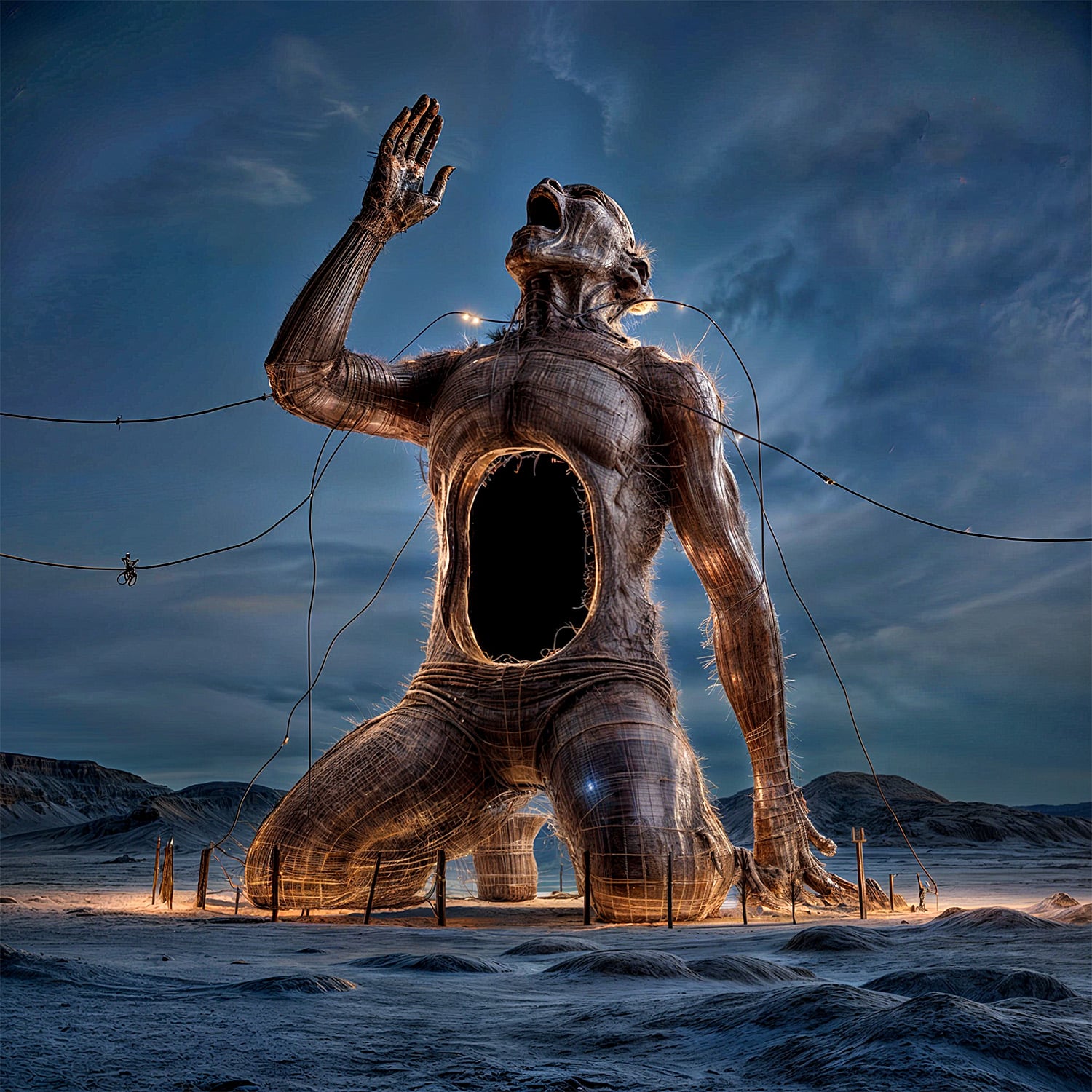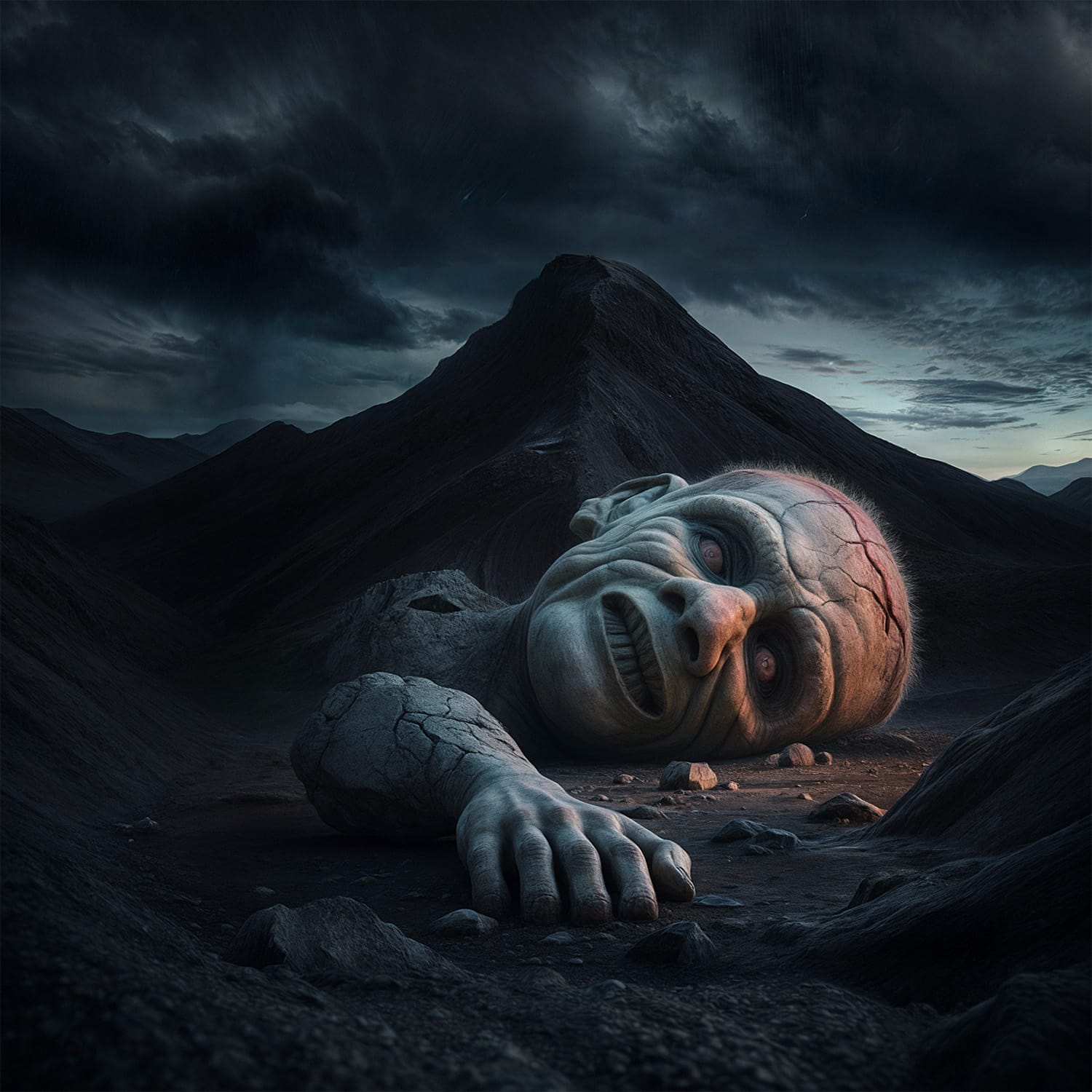 Have always been fascinated with the idea of giant statues standing alone in the middle of nowhere, long abandoned, standing silent and alone. In my imagination, it would be surreal to be the last person alive on earth, wandering the planet, and stumbling upon a lone statue standing in isolation in the middle of a thick forest or a empty barren desert or at the bottom of a quiet ocean. I tried capturing that vision with these AI creations.