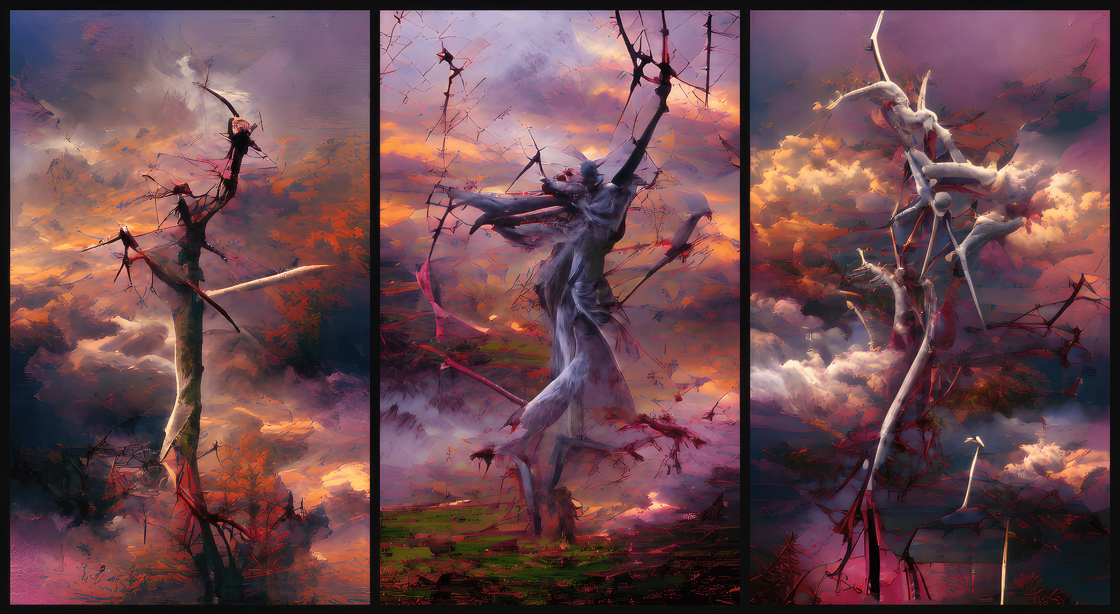 The triptych “Dead Branches …” is a complex emotional story that explores human nature, as well as our position in the world, building the narrative on the emphasized contrast between the pursuit of knowledge, destructive power and creative suffering.
