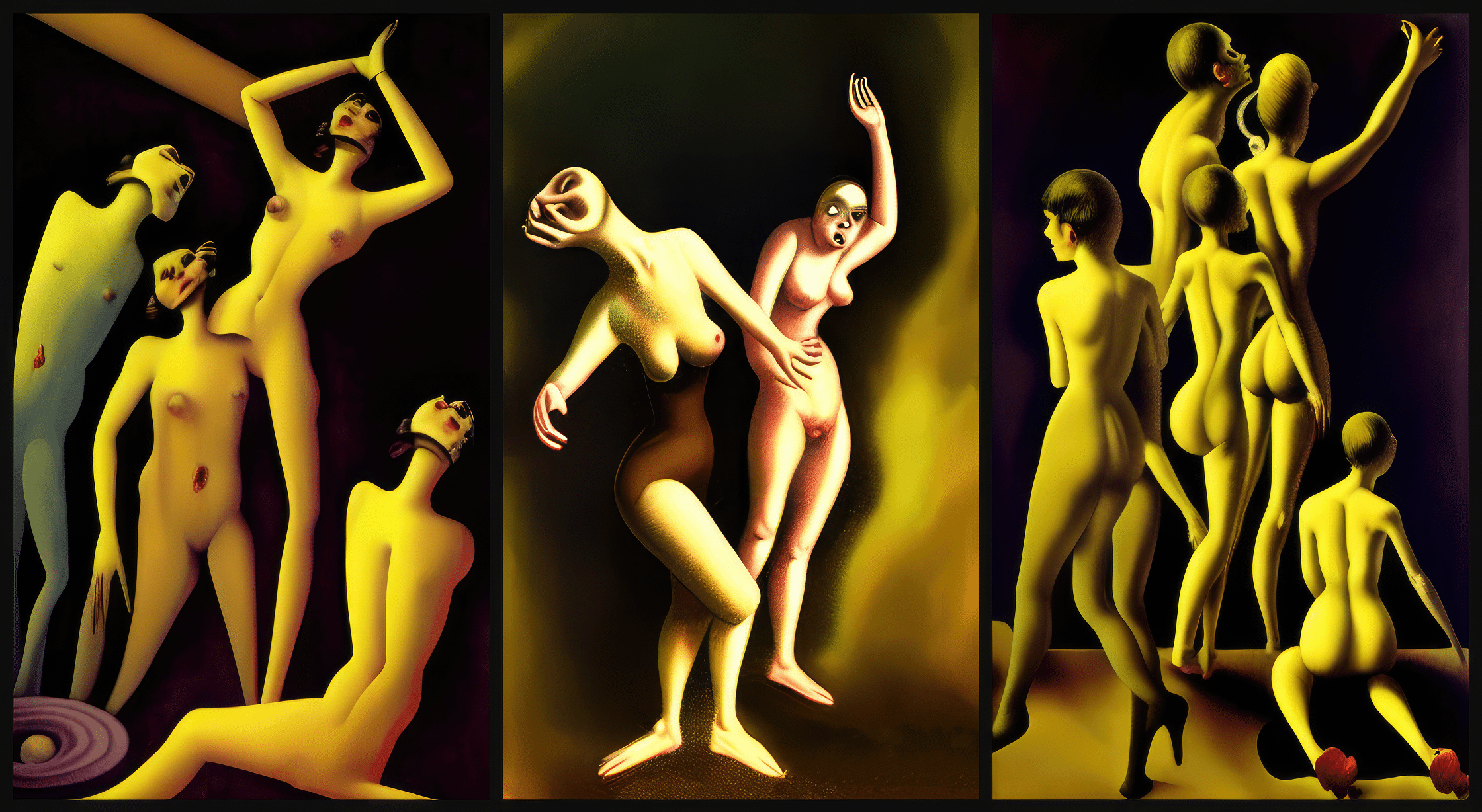 “Erotic Feast” is a provocative work that uses erotic scenes as symbolism to explore the deepest and most complex aspects of human sexuality. At the same time, it is an attempt to evoke strong emotions in the viewer, through the depiction of introspective loneliness, to euphoric union and intimate closeness between two. Each panel conveys a different aspect of human intimacy, making the triptych layered and rich in meaning.