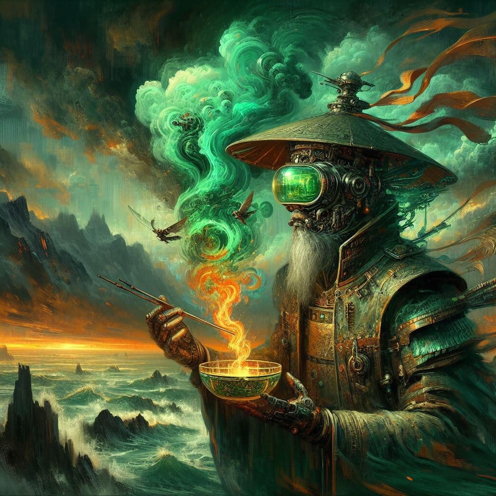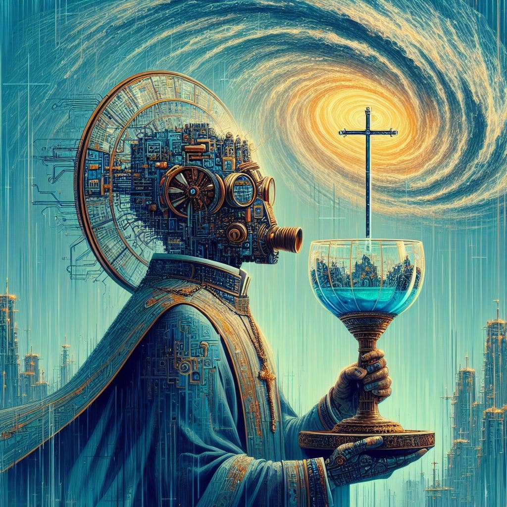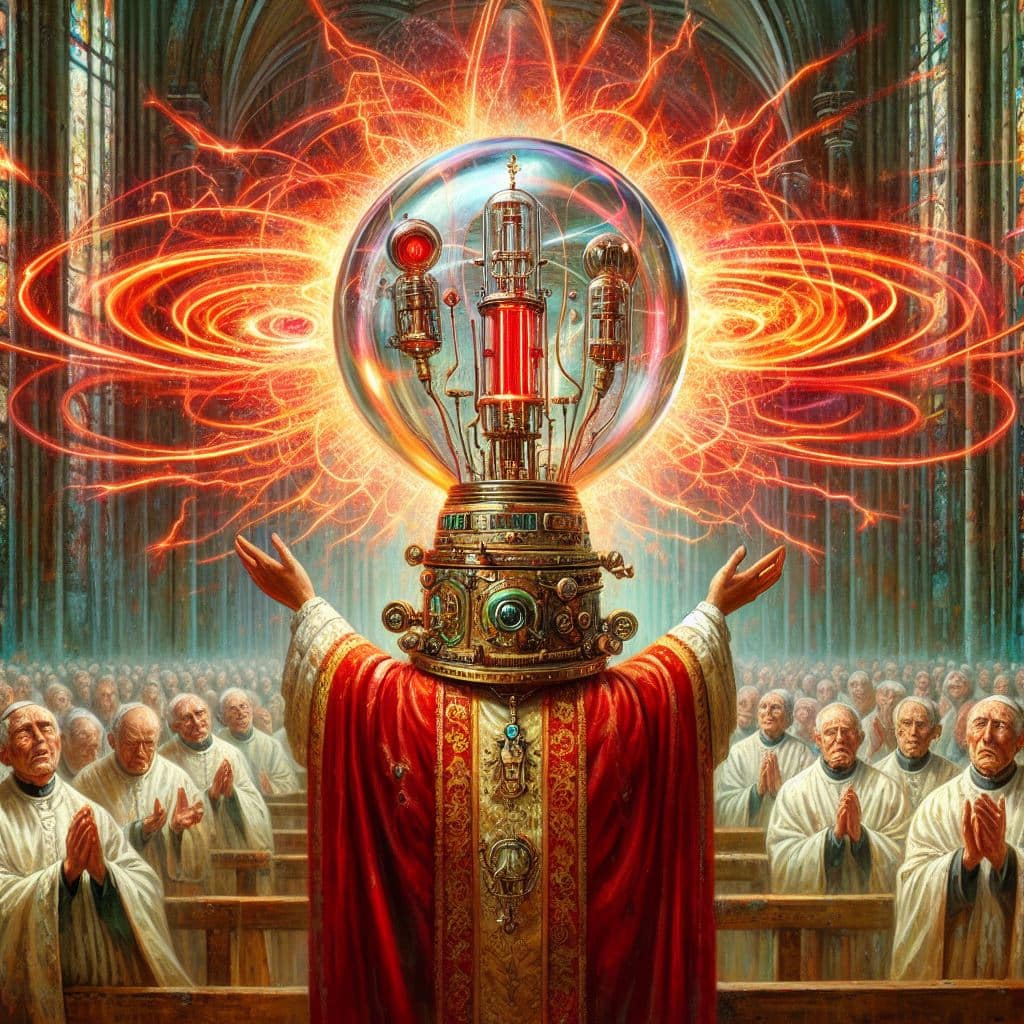 In a bleak and desolate future, where hope is but a distant memory, a flicker of light emerges. Amidst the shadows, a mysterious cyberpunk sect rises, worshipping the sacred trinity of RGB—Red, Green, and Blue. They whisper of a prophecy, foretelling the arrival of a new light bearer who will illuminate the darkness. Their priests, entwined with invisible beams of light, commune with the celestial source that breathes life from the heavens. As the sect’s influence spreads, the world braces for the dawn of a new era, where technology and mysticism collide in a battle for the soul of humanity.