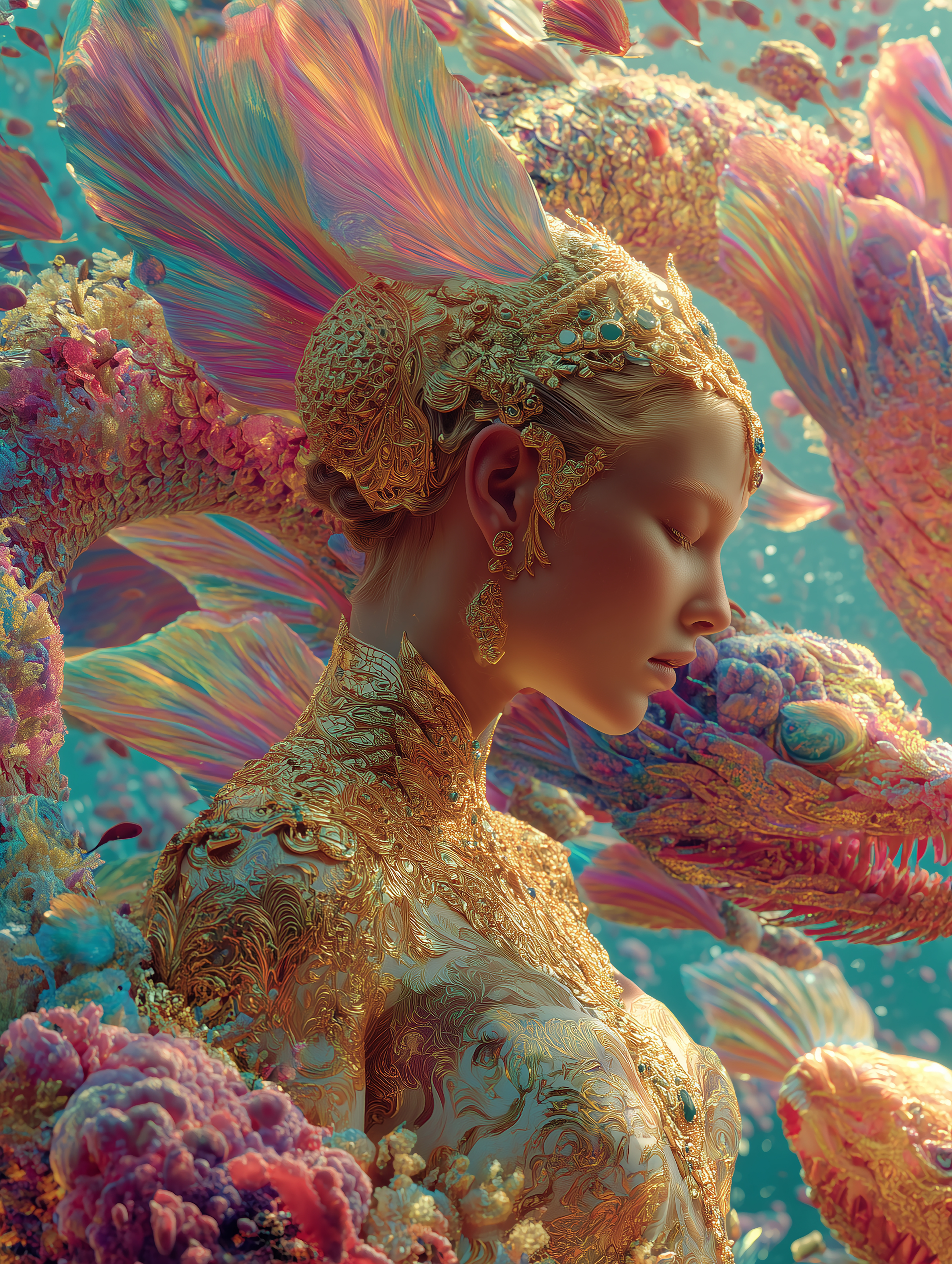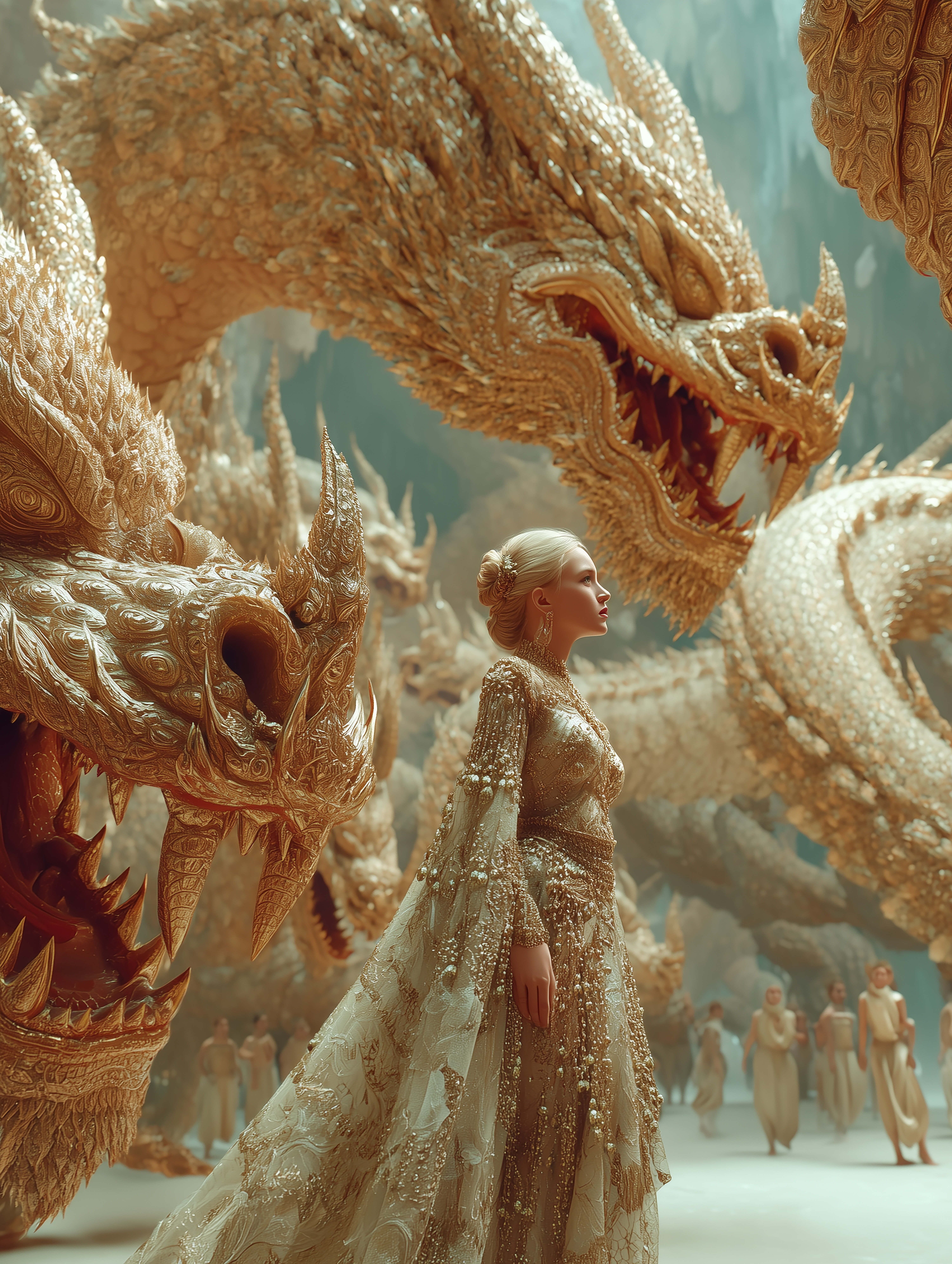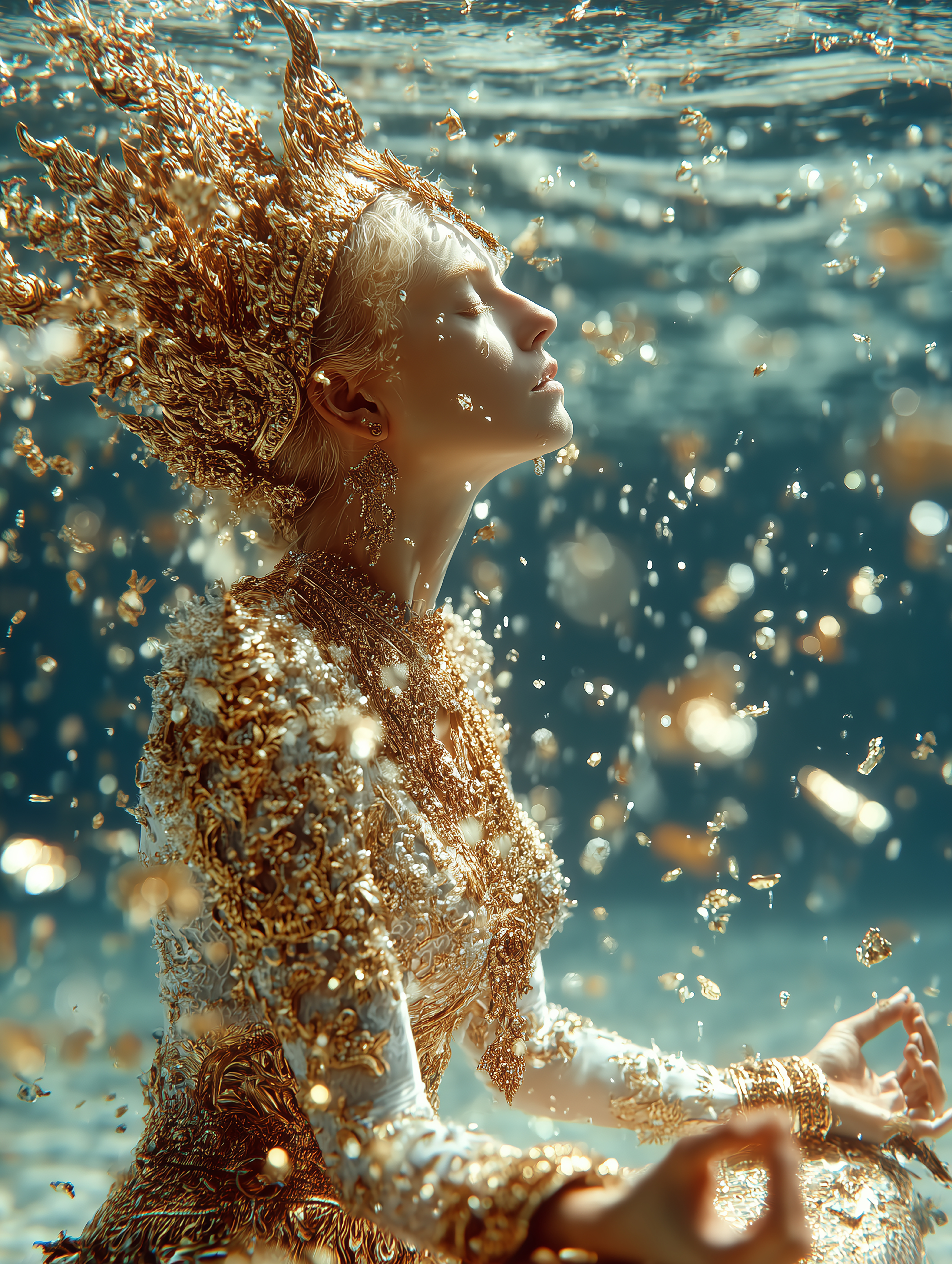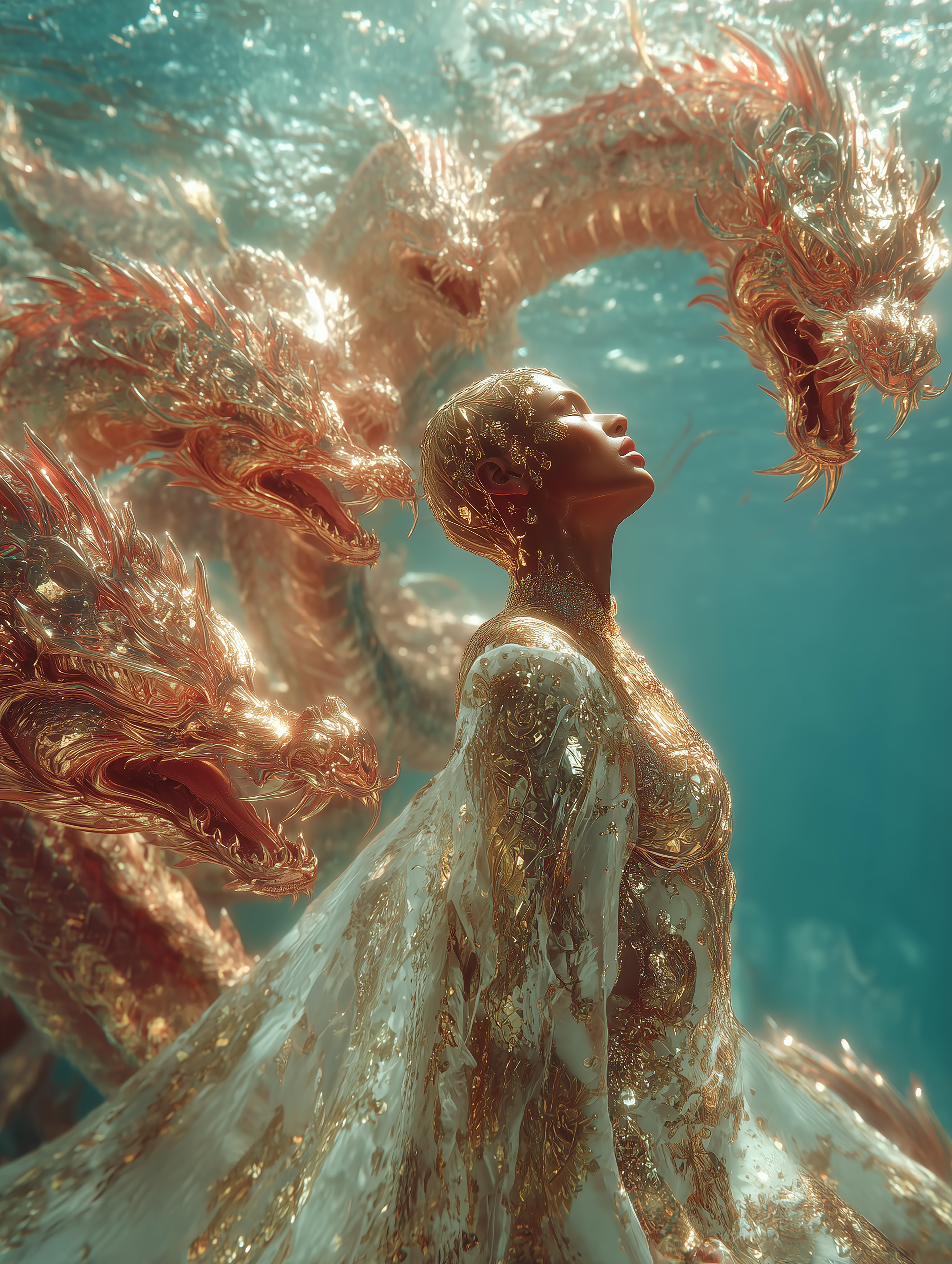 My work reimagines the journey of a Naga princess who devotes herself to ascetic practice and spiritual transformation in order to ascend into the human realm. This narrative is woven into visuals that merge mythology with high fashion, portraying the divine feminine not only as a cultural symbol but also as a modern icon of strength, beauty, and luxury.