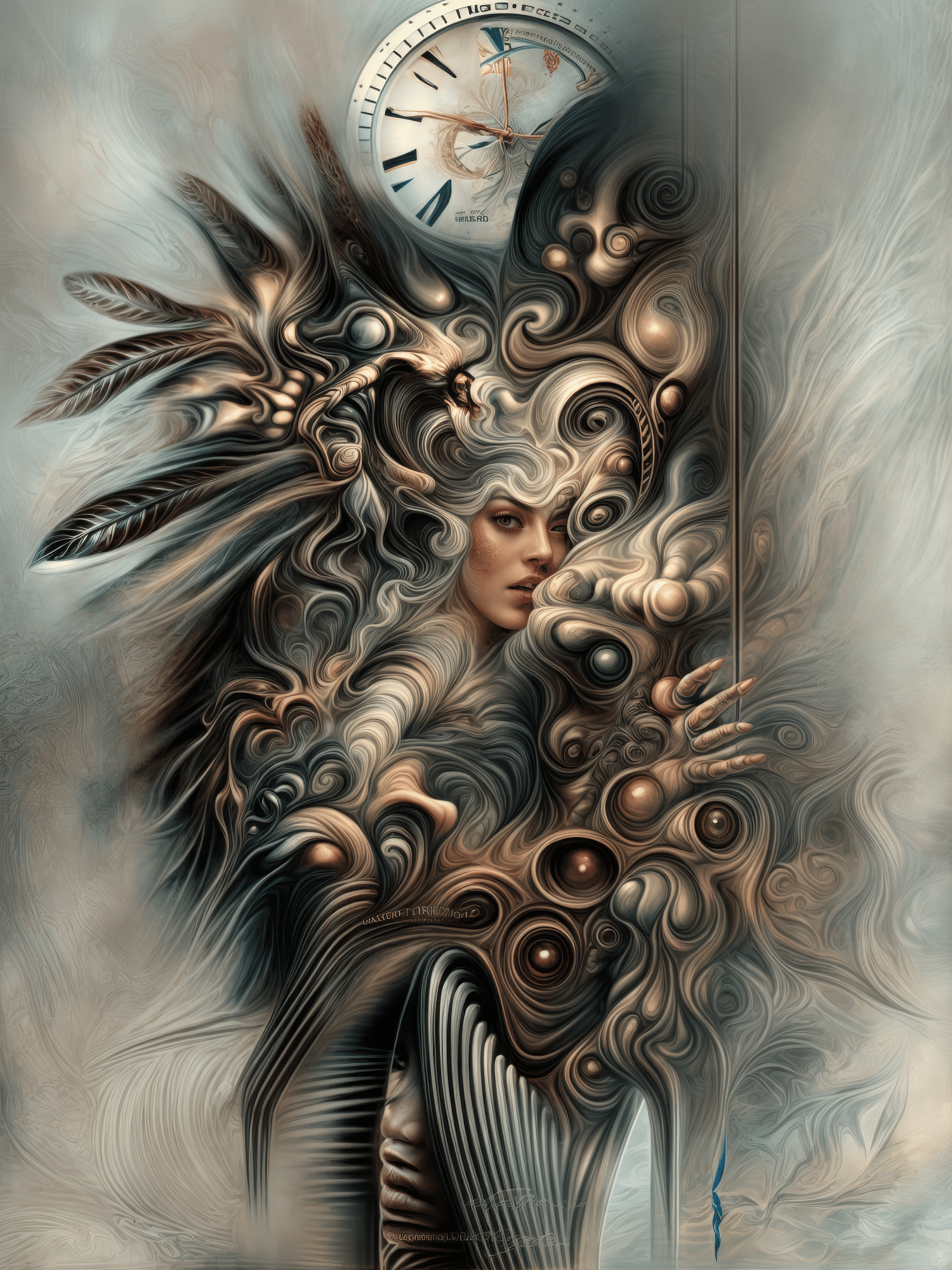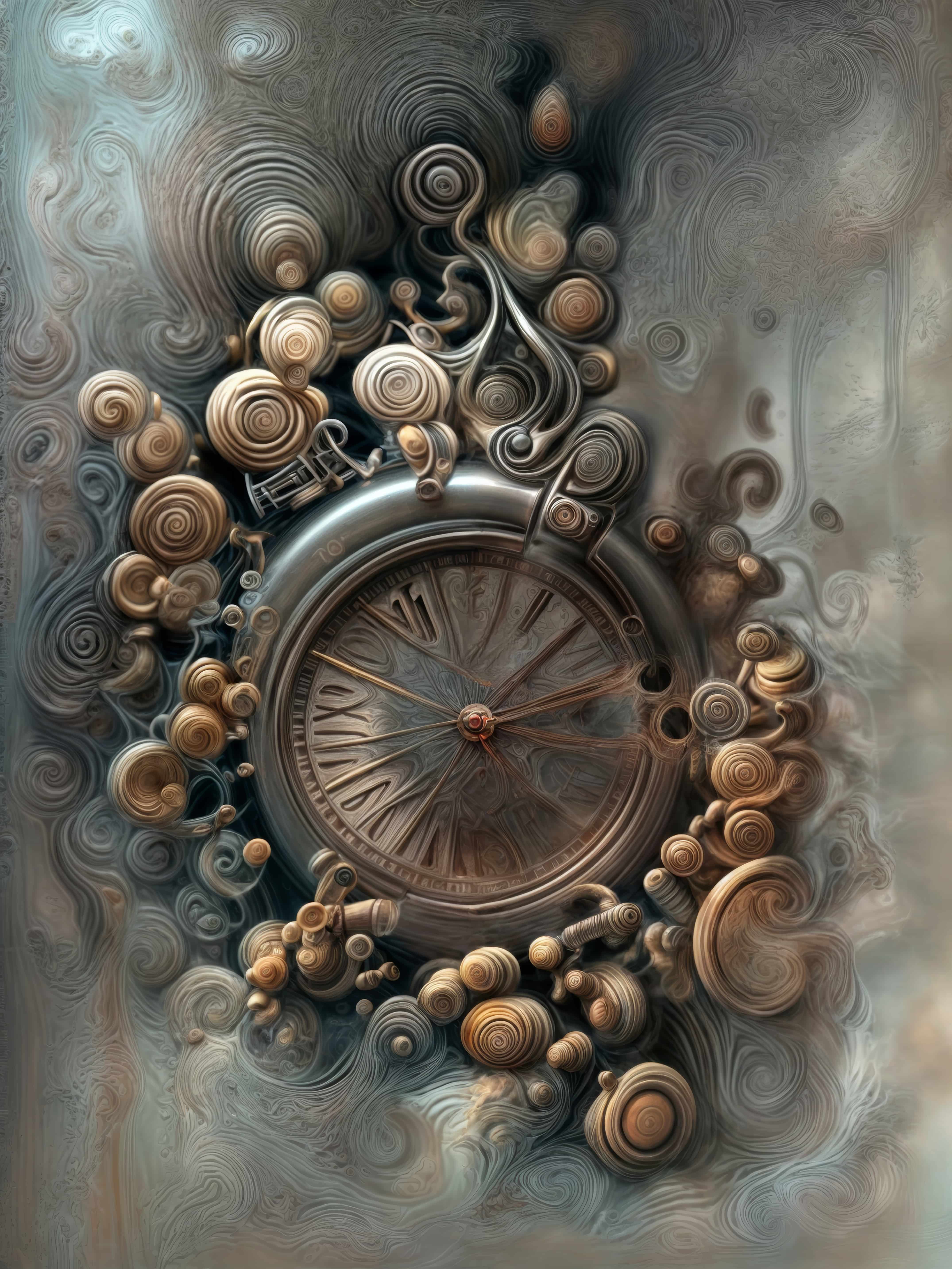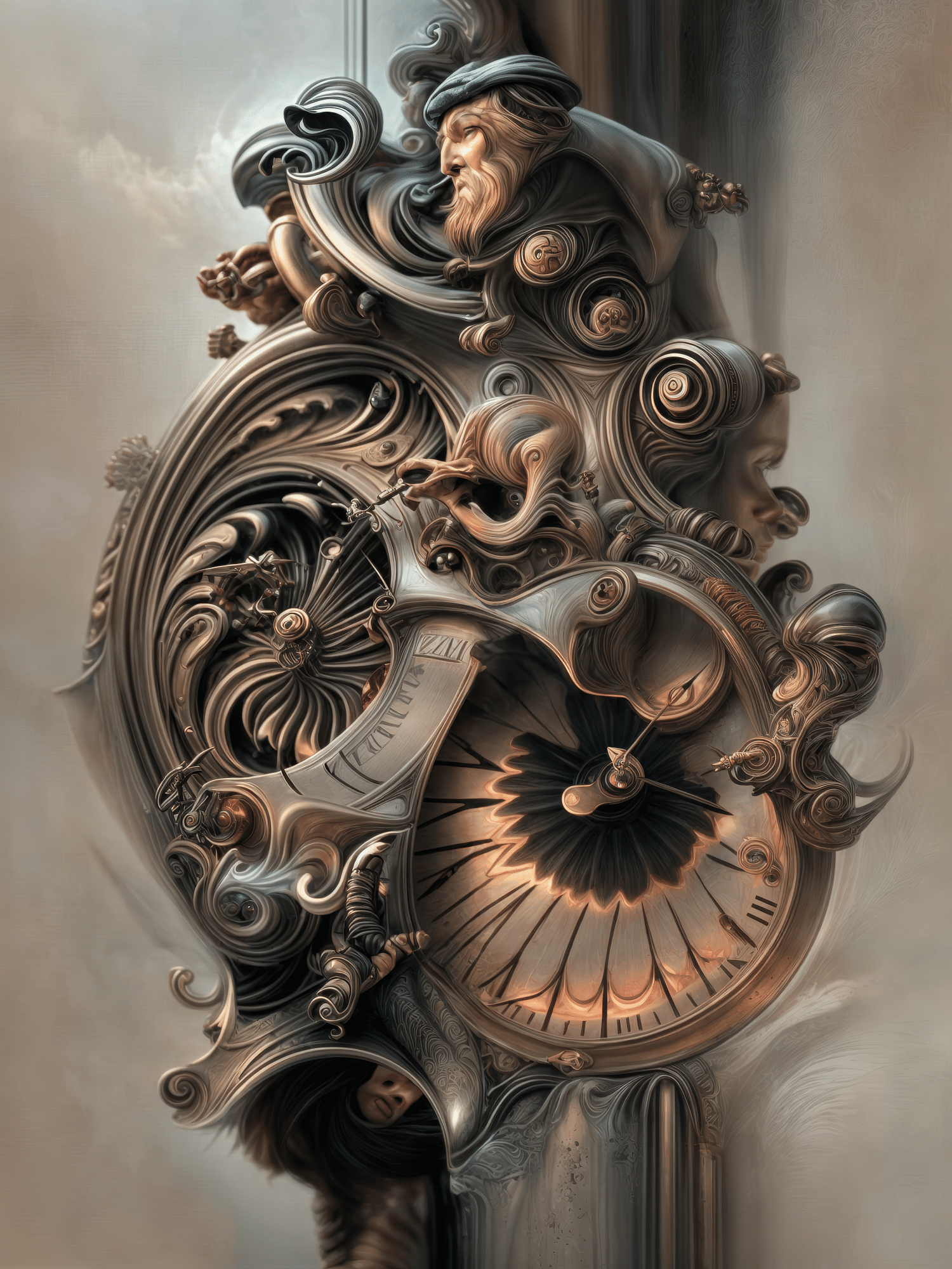 AI-generated images centered around the theme of time often feature clocks as prominent visual elements, symbolizing the passage of moments, the constraints of schedules, or the concept of eternity. These images may explore time's elusive nature, depicting scenes like a clock melting away, suggesting that time is fleeting, or a shattered clock face, symbolizing the breaking of routine or the unpredictability of life. Time-themed AI art can evoke reflection, emphasizing how we interact with time, whether it be through the urgency of deadlines, the nostalgia of past moments, or the anticipation of future events. Through its symbolic presence, the clock guides the viewer’s thoughts towards deeper considerations of time's influence on our personal lives, societal structures, and the universe.