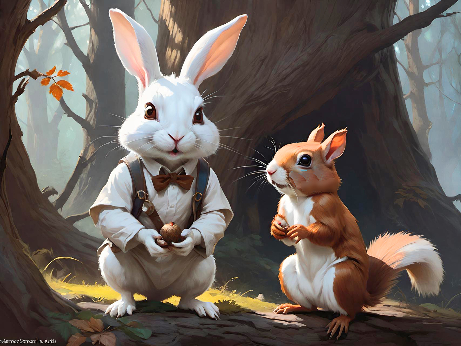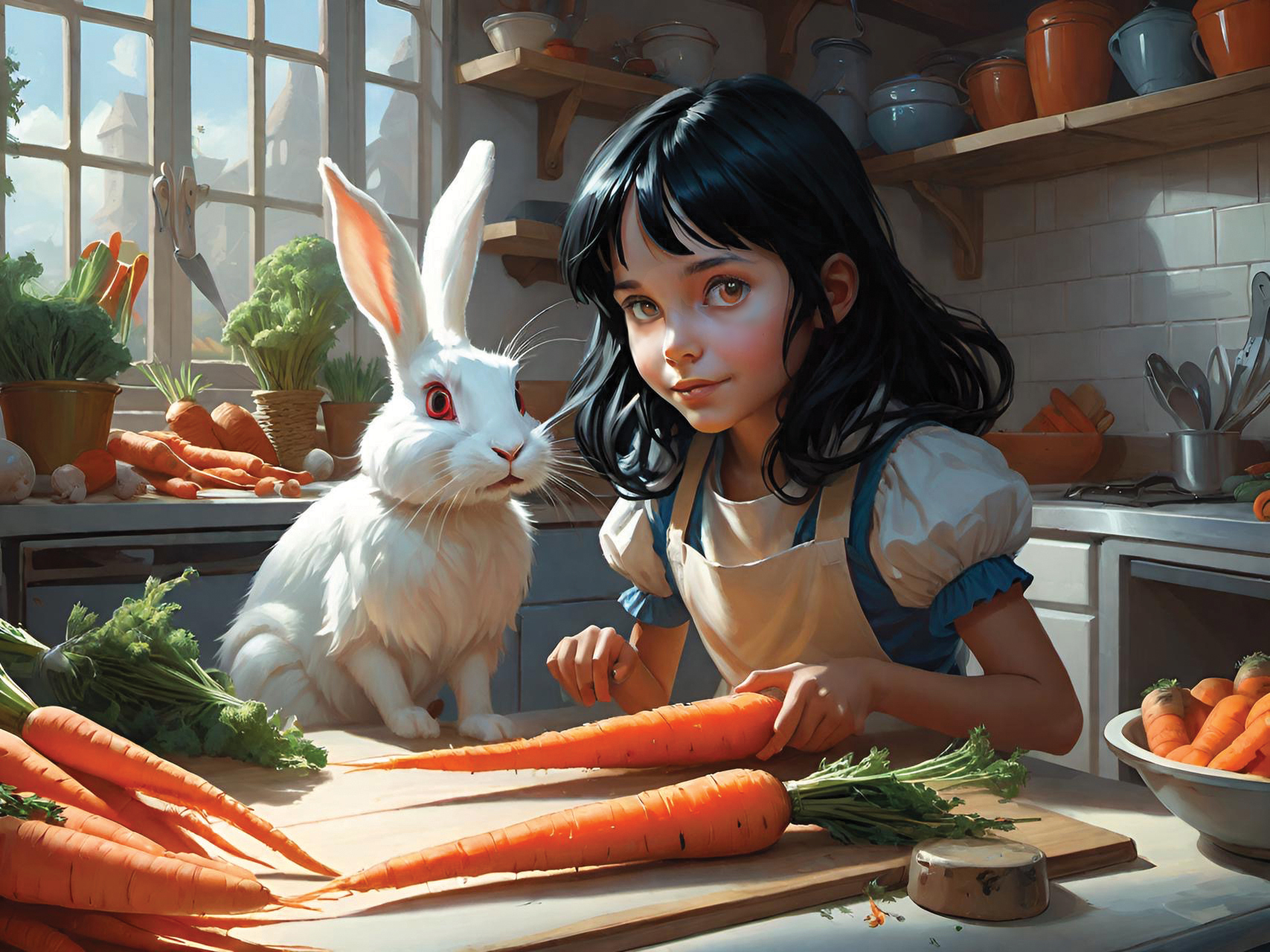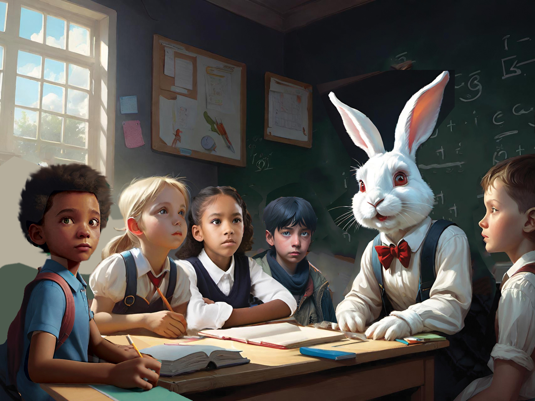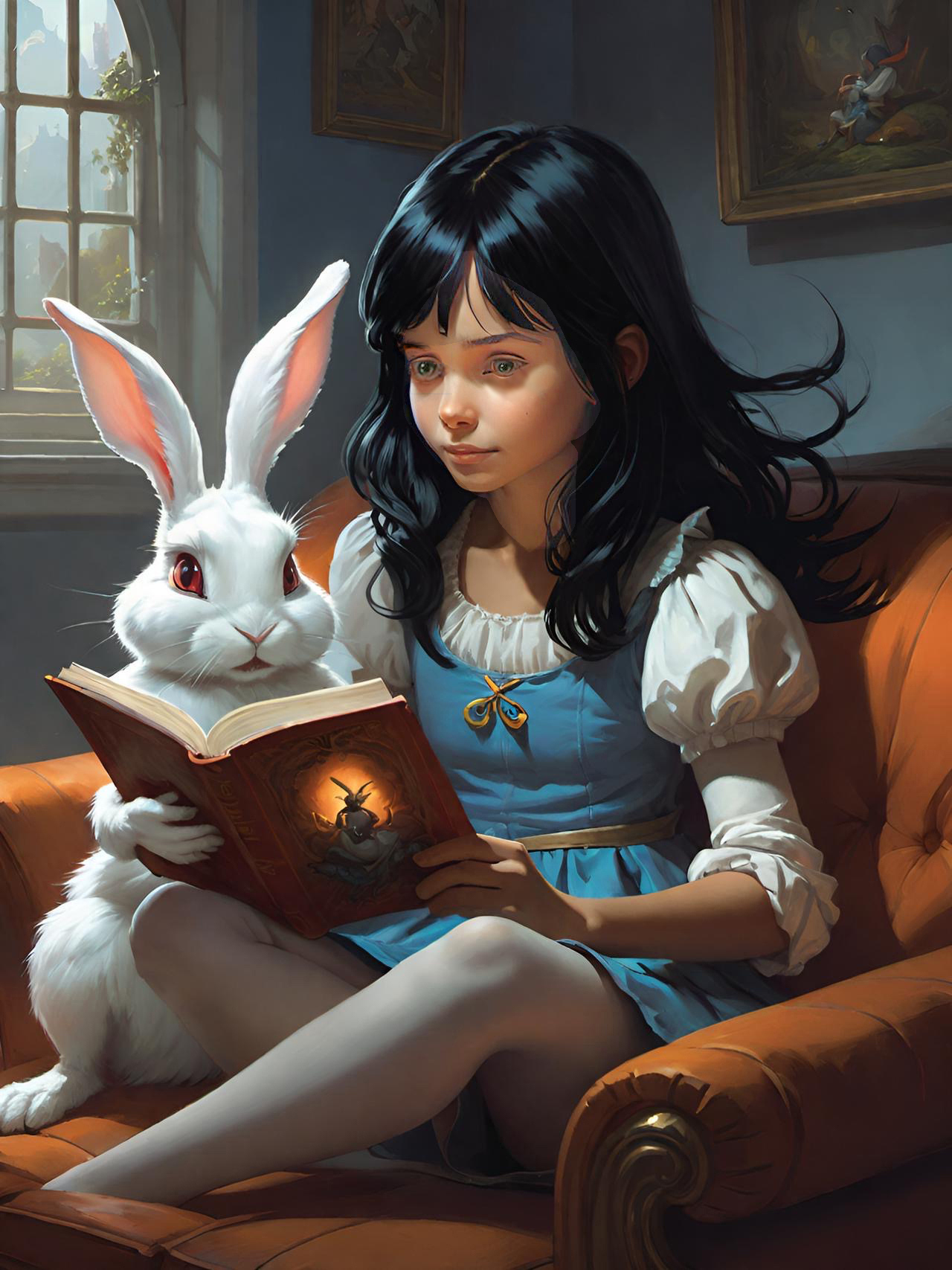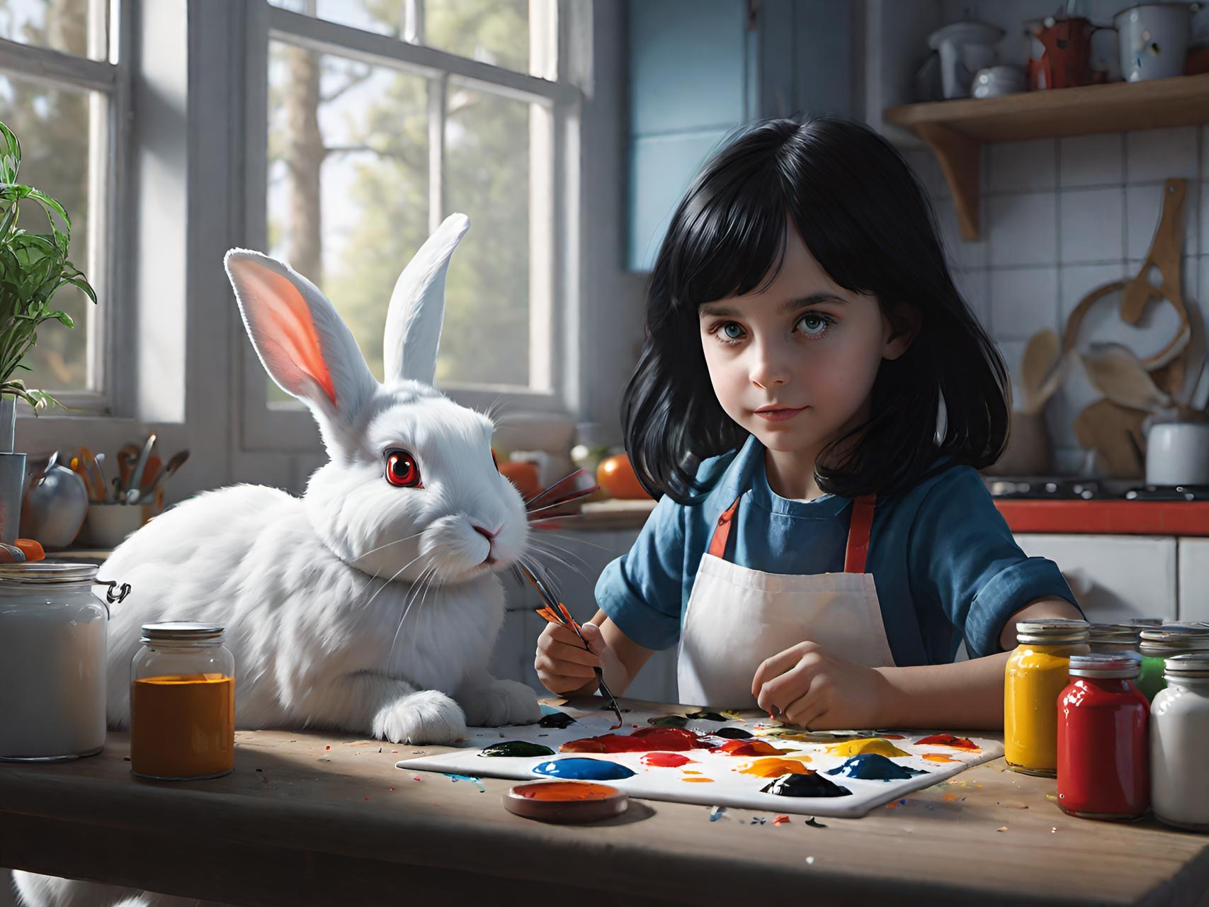 This set of illustrations was created for a children's book about a rescue rabbit and his girl owner who named the rabbit Winston. The book was prompted by an AI computer image of a handsome rabbit dressed up in a navy officers uniform. The computer tools made it possible to create more interesting images of a rabbit in various, human-like situations. The story then evolved from that collection of computer-generated rabbit images. We described the young girl we had in mind to the computer and it gave us what we asked for—the perfect companion for Winston. We called her Wendy, which has a nice fluency coupled with Winston. We hope many children will enjoy the wonderful imaginings of Wendy and Winston that AI made possible.