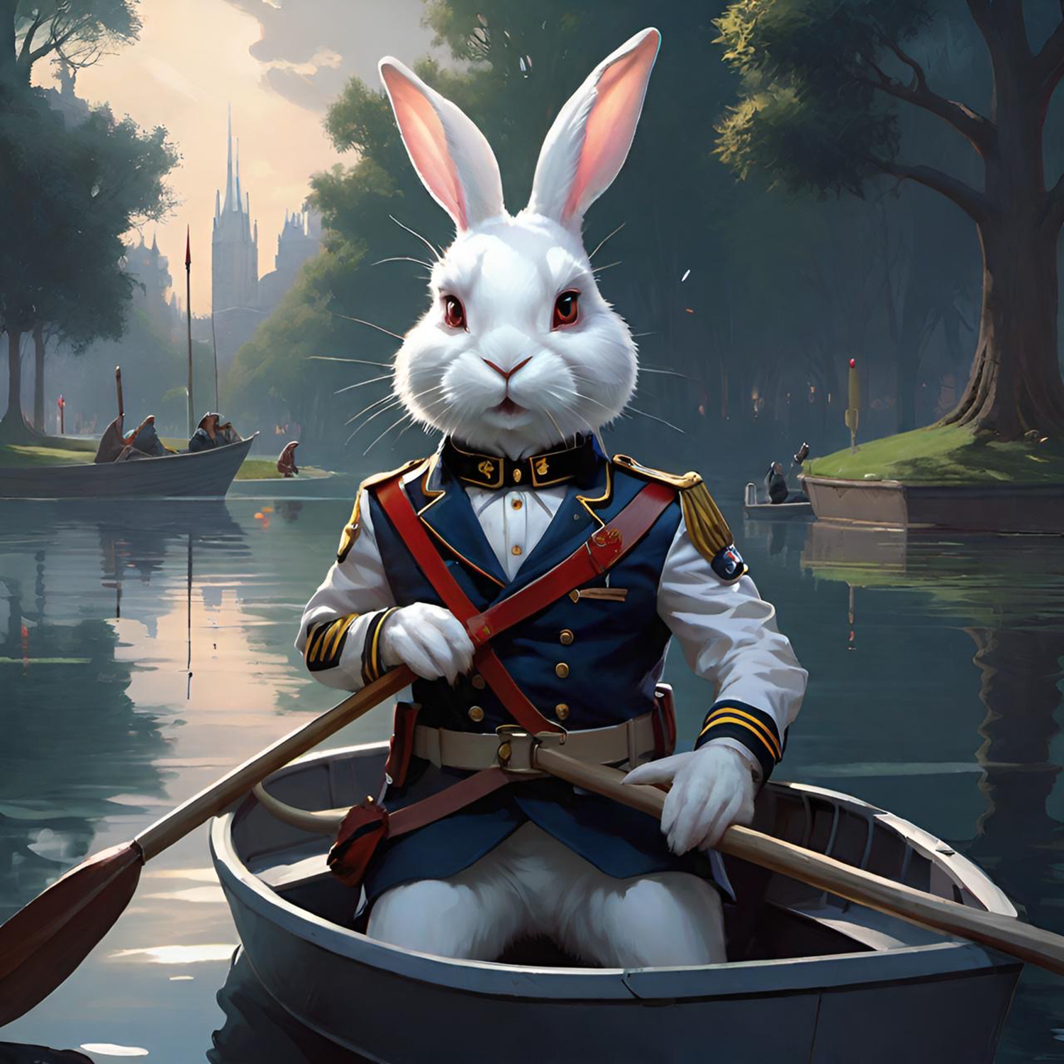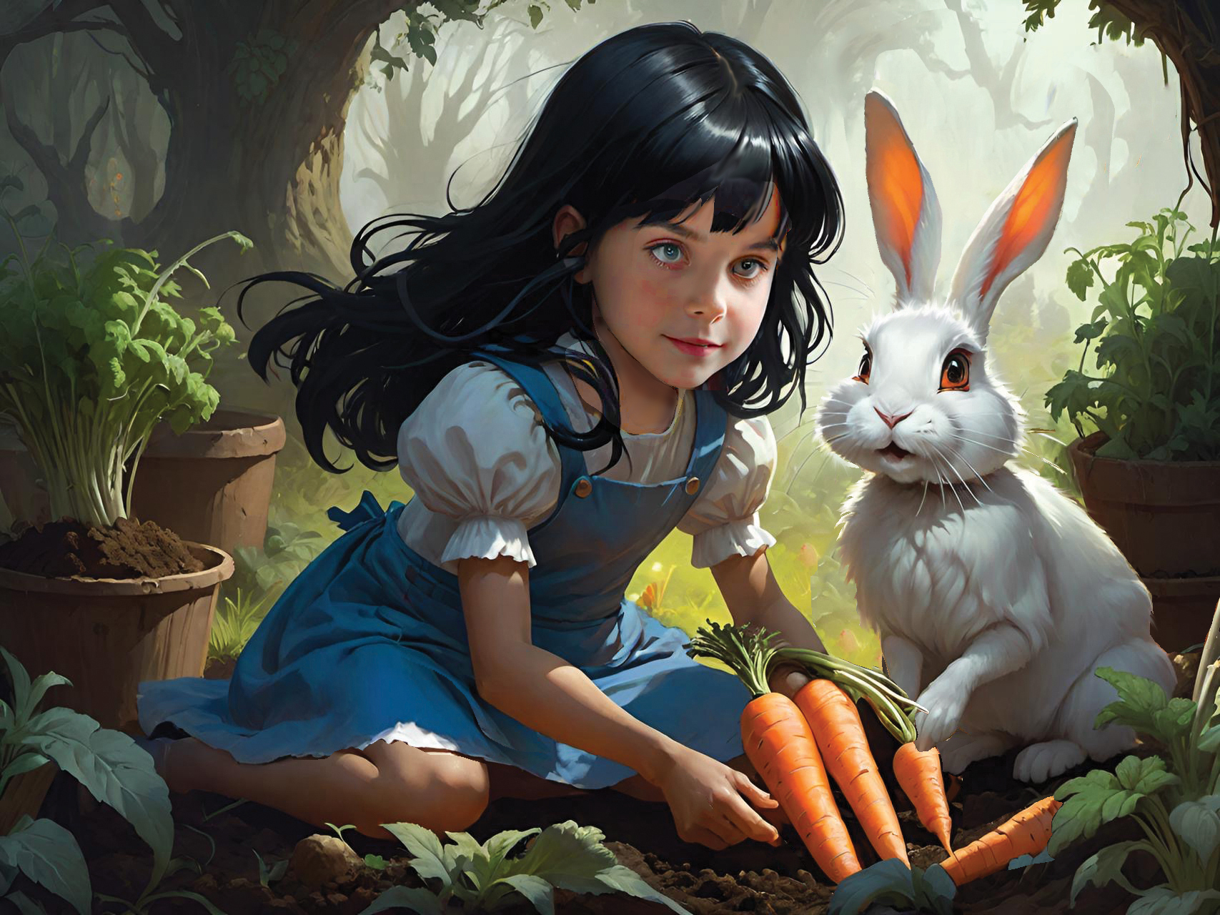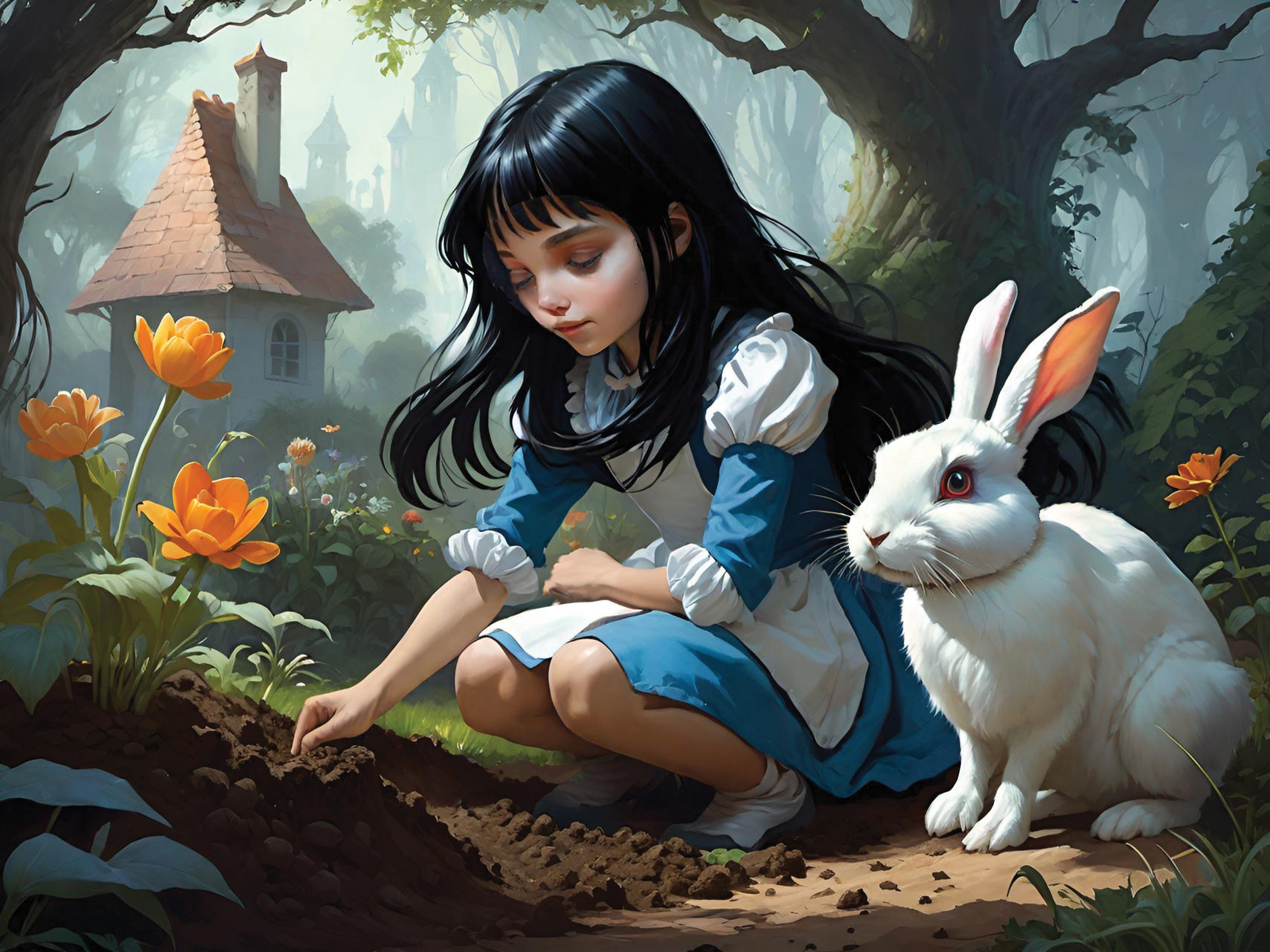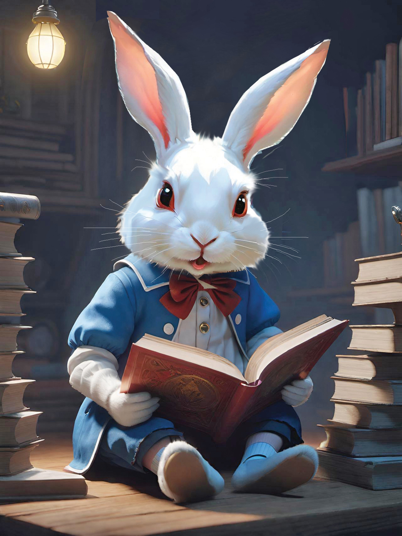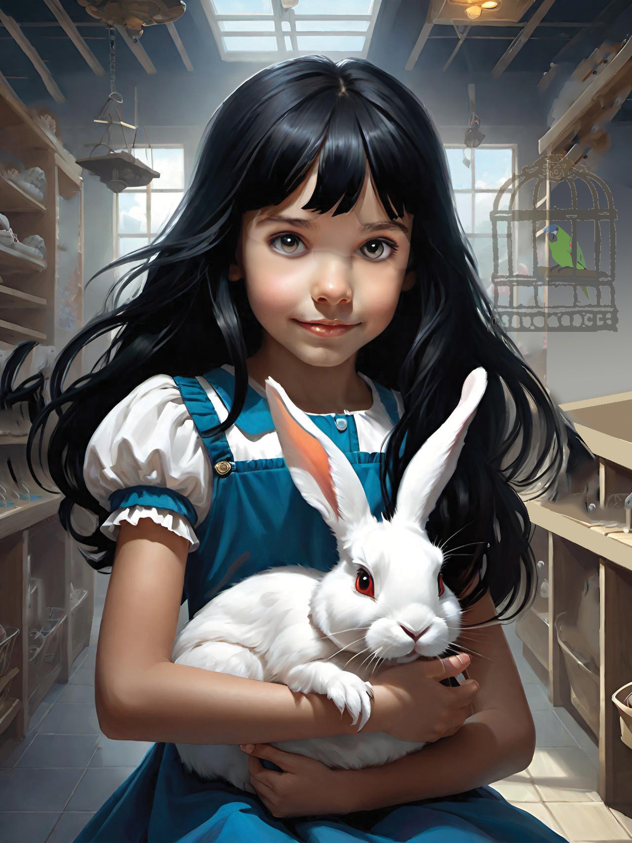 This set of illustrations was created for a children's book about a rescue rabbit and his girl owner who named the rabbit Winston. The book was prompted by an AI computer image of a handsome rabbit dressed up in a navy officers uniform. The computer tools made it possible to create more interesting images of a rabbit in various, human-like situations. The story then evolved from that collection of computer-generated rabbit images. We described the young girl we had in mind to the computer and it gave us what we asked for—the perfect companion for Winston. We called her Wendy, which has a nice fluency coupled with Winston. We hope many children will enjoy the wonderful imaginings of Wendy and Winston that AI made possible.