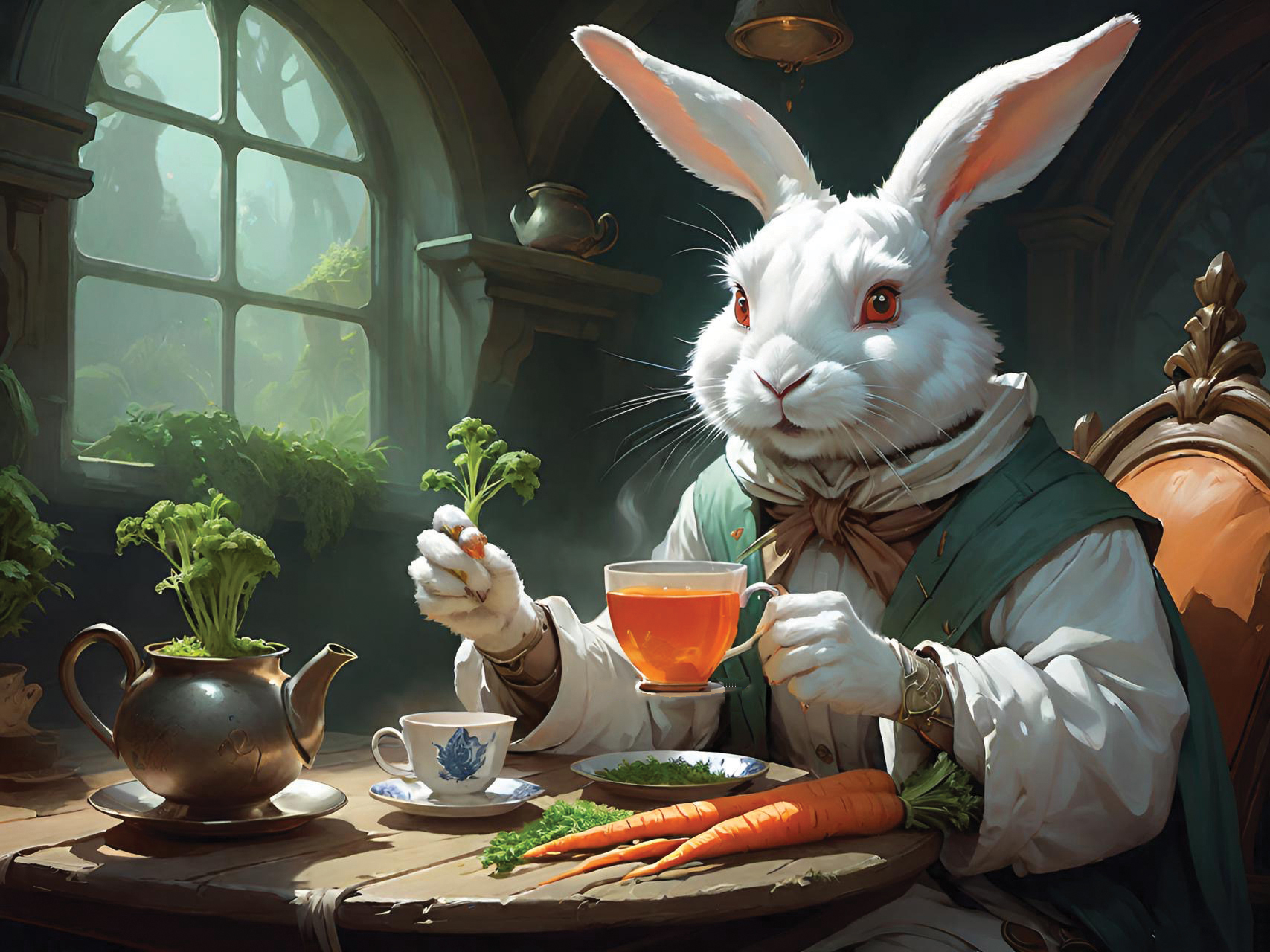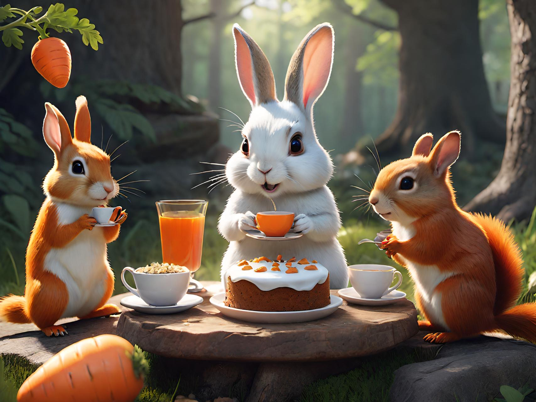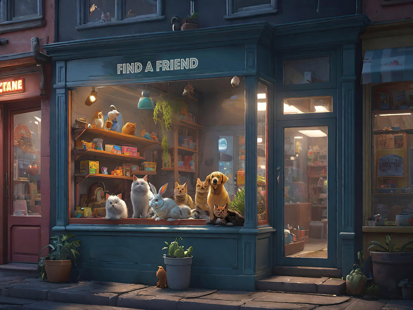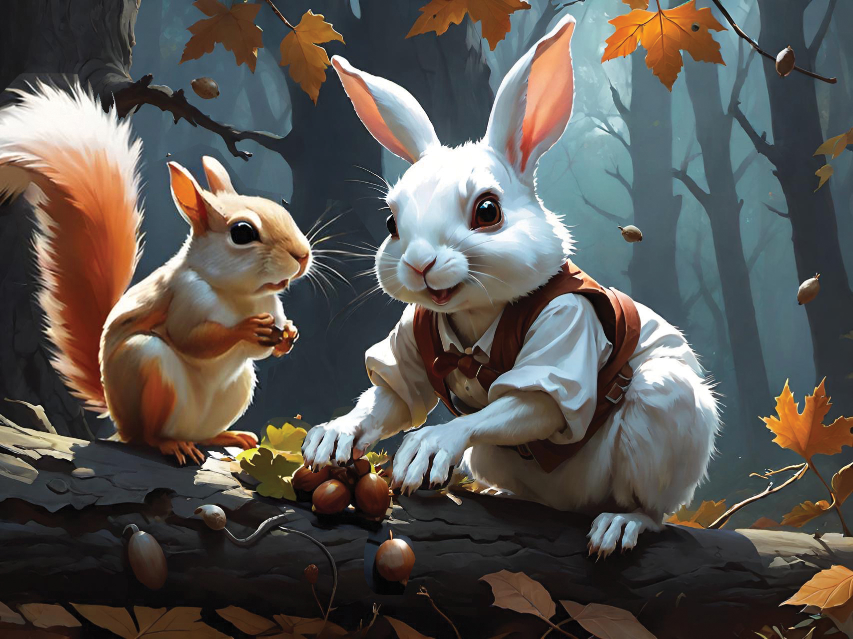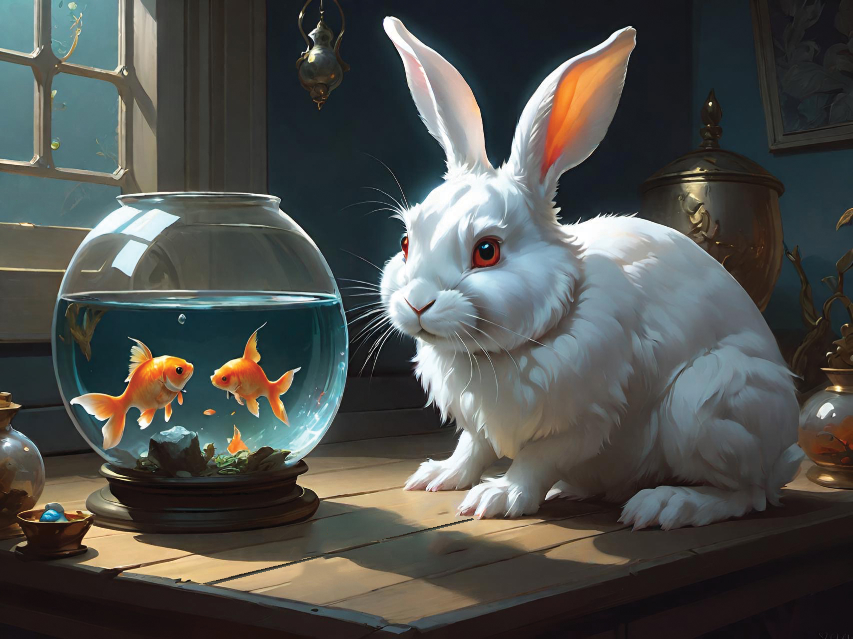 This set of illustrations was created for a children's book about a rescue rabbit and his girl owner who named the rabbit Winston. The book was prompted by an AI computer image of a handsome rabbit dressed up in a navy officers uniform. The computer tools made it possible to create more interesting images of a rabbit in various, human-like situations. The story then evolved from that collection of computer-generated rabbit images. We described the young girl we had in mind to the computer and it gave us what we asked for—the perfect companion for Winston. We called her Wendy, which has a nice fluency coupled with Winston. We hope many children will enjoy the wonderful imaginings of Wendy and Winston that AI made possible.